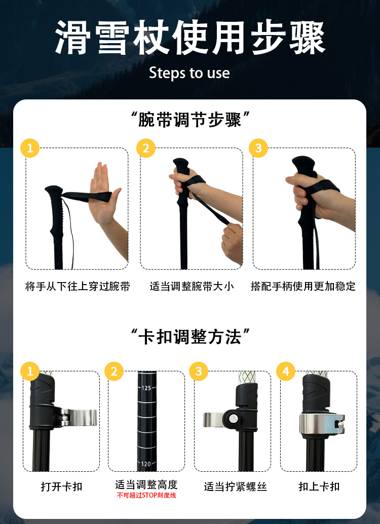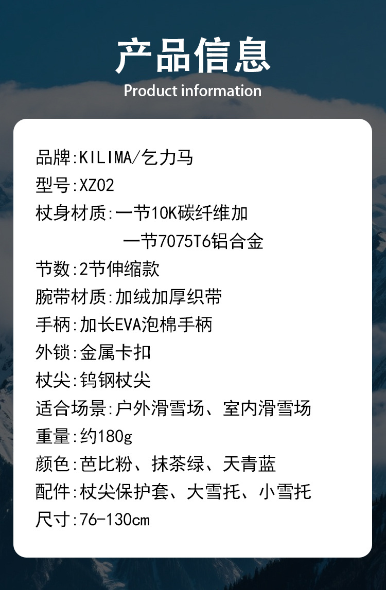 킬리마 스키 스틱 알루미늄 합금 + 10K 탄소섬유 텔레스코픽 경량 남녀 공용 아웃도어 스키 전문 등산 스틱스토어 가기