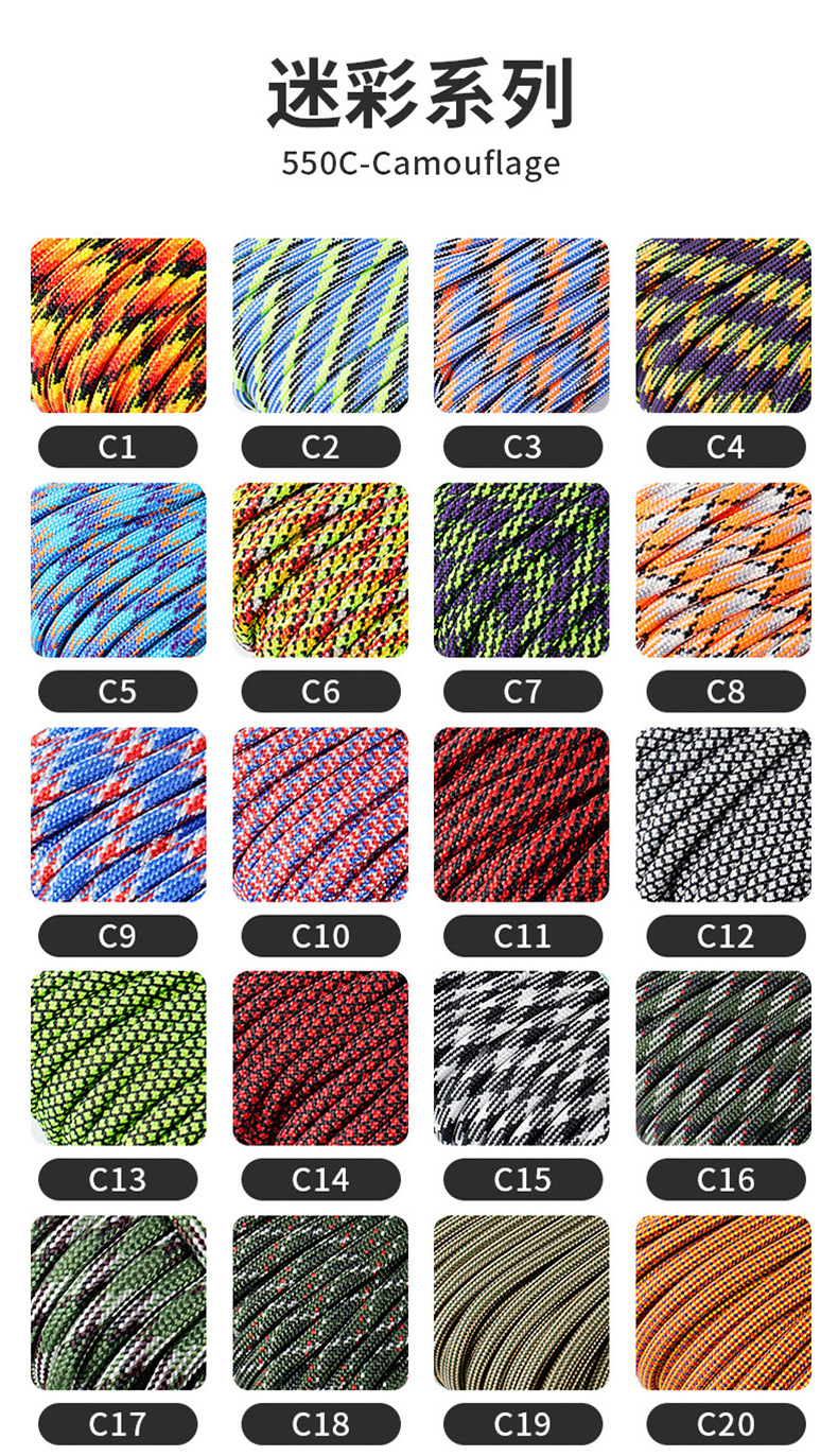 550C 시리즈 Paracord 야외 캠핑 인명 구조 로프 7 코어 4mm mm 550 목록 31m 번들 땋은 로프