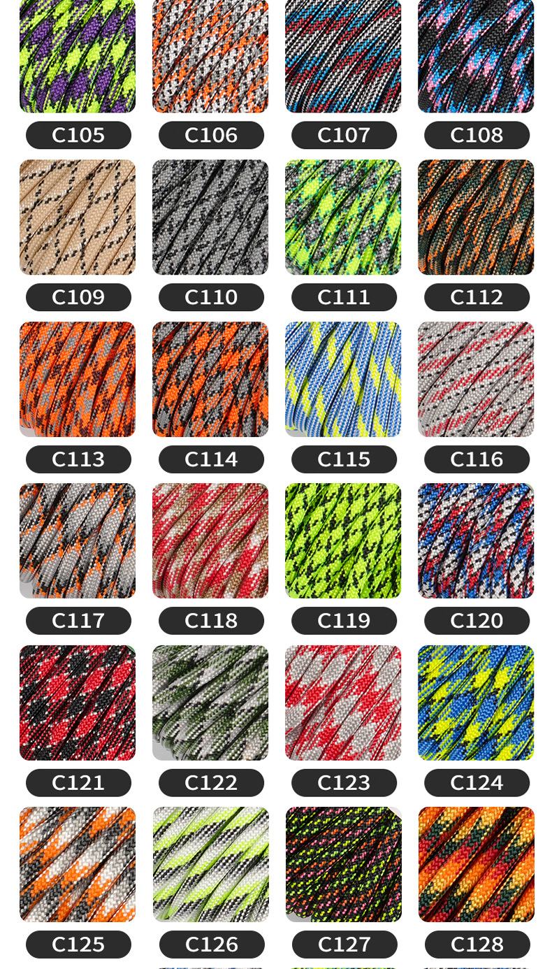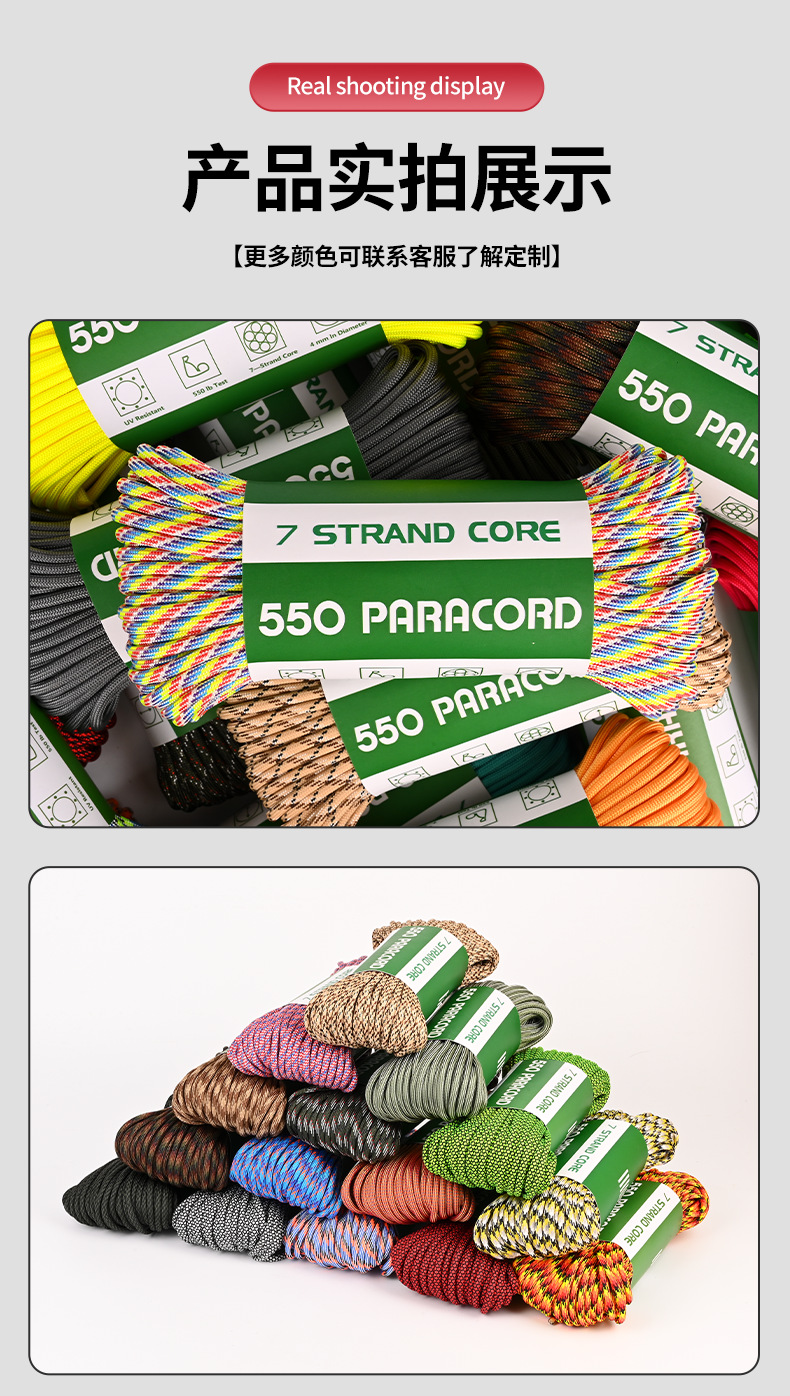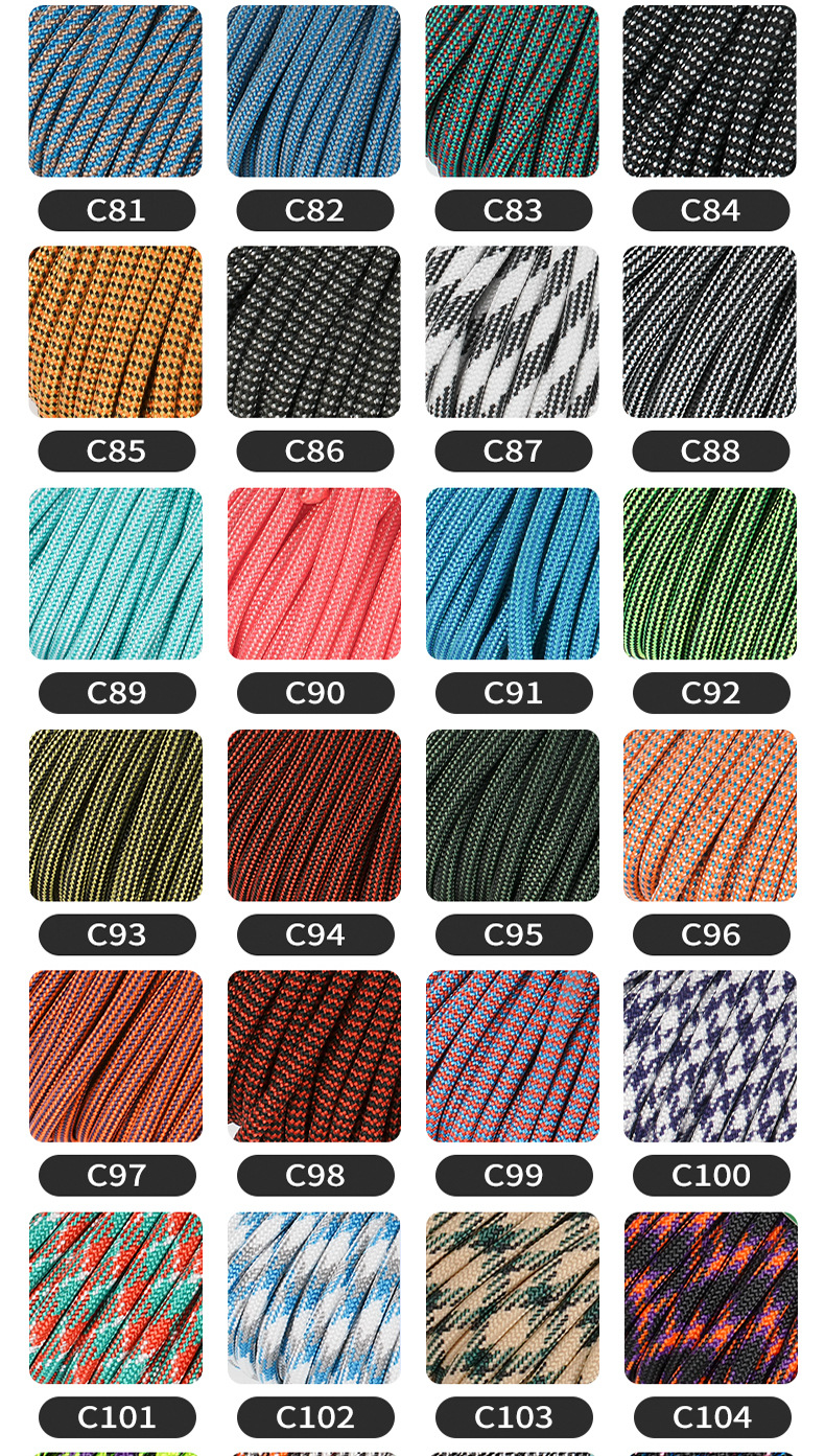 550C 시리즈 Paracord 야외 캠핑 인명 구조 로프 7 코어 4mm mm 550 목록 31m 번들 땋은 로프스토어 가기