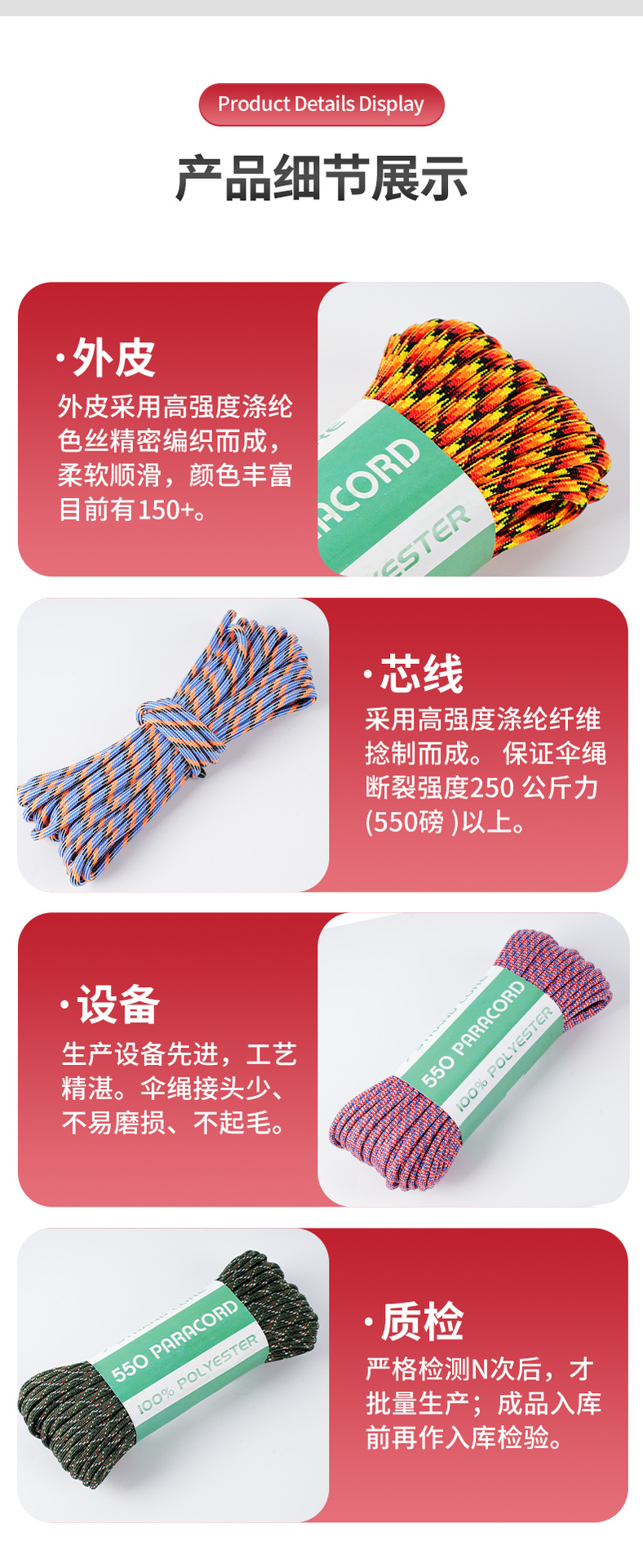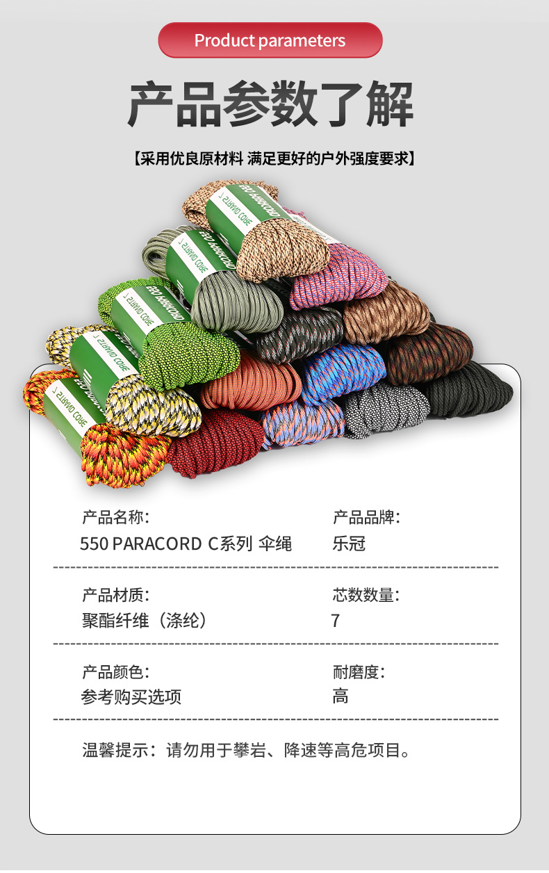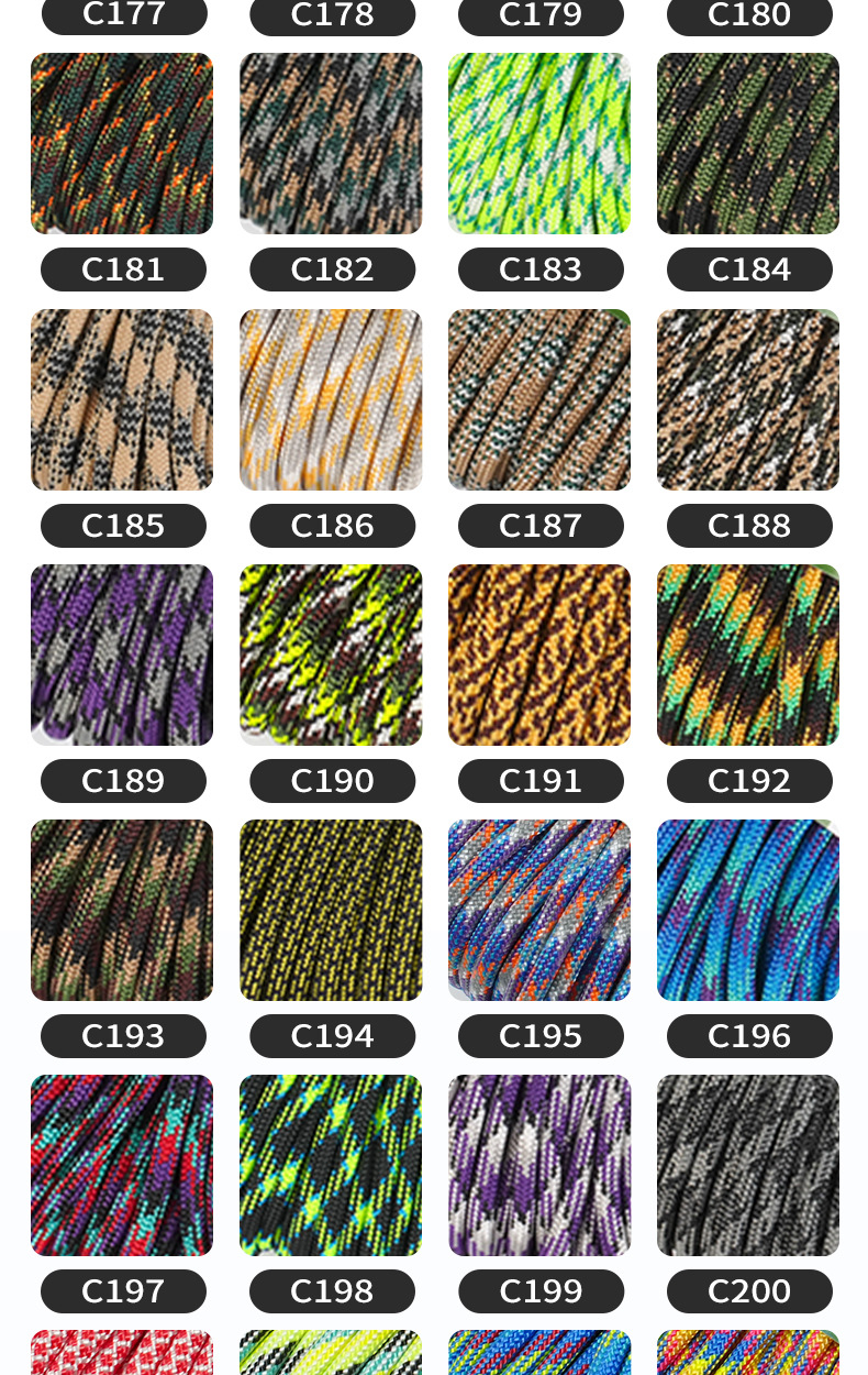 550C 시리즈 Paracord 야외 캠핑 인명 구조 로프 7 코어 4mm mm 550 목록 31m 번들 땋은 로프스토어 가기