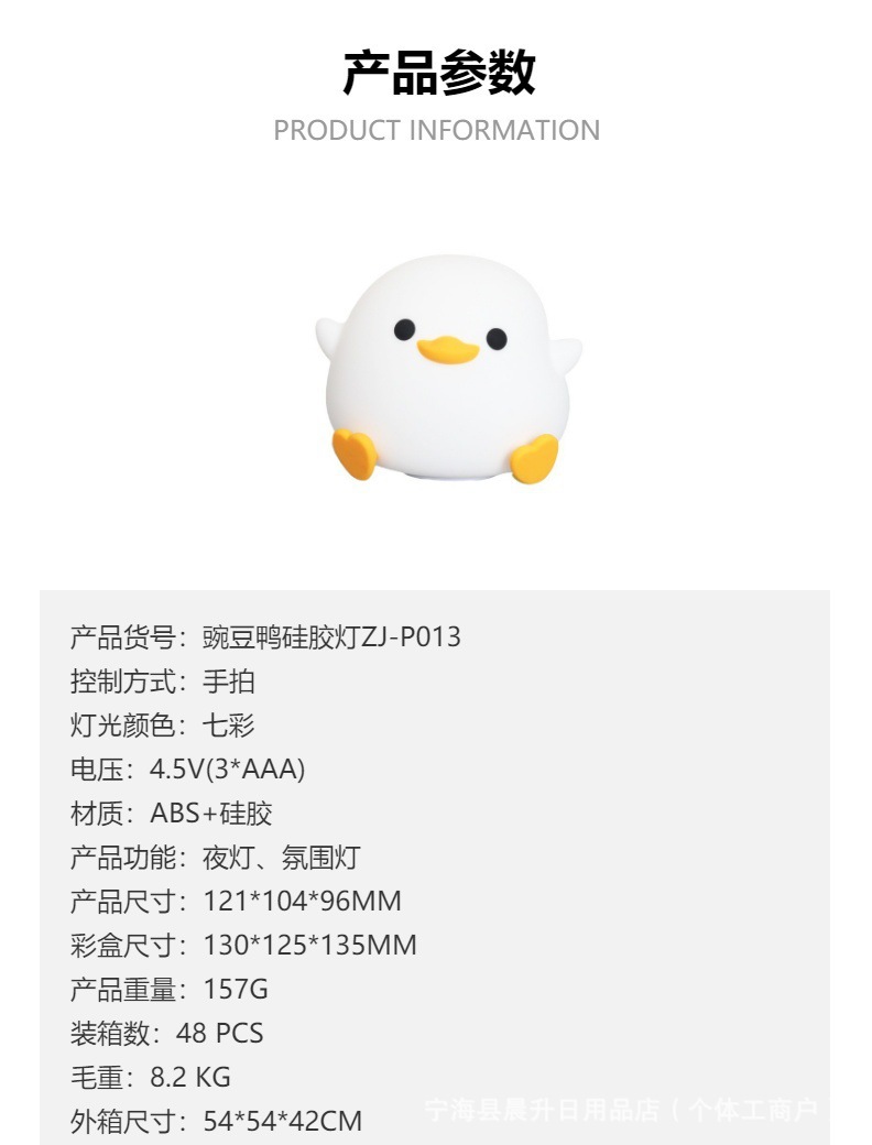 Doudou Duck 수면 센서 램프 충전식 휴대용 따뜻한 빛 패팅 램프 실리콘 야간 조명 침실 머리맡 램프 야간 조명