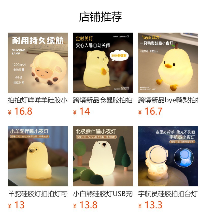 Doudou Duck 수면 센서 램프 충전식 휴대용 따뜻한 빛 패팅 램프 실리콘 야간 조명 침실 머리맡 램프 야간 조명스토어 가기