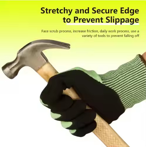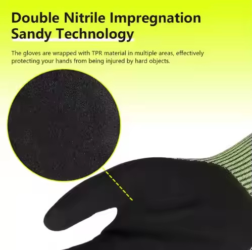 레벨 5 고강도 절단 방지 장갑 이중층 모래 니트릴 코팅 절단 방지 산업용 작업 장갑