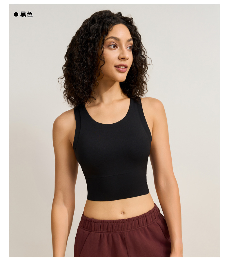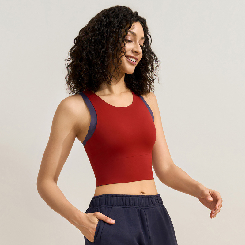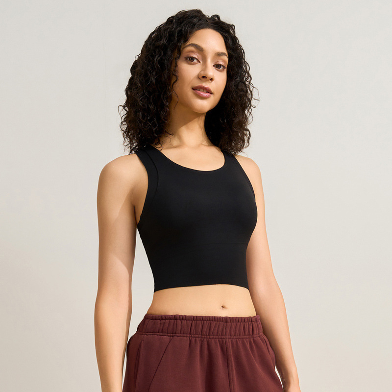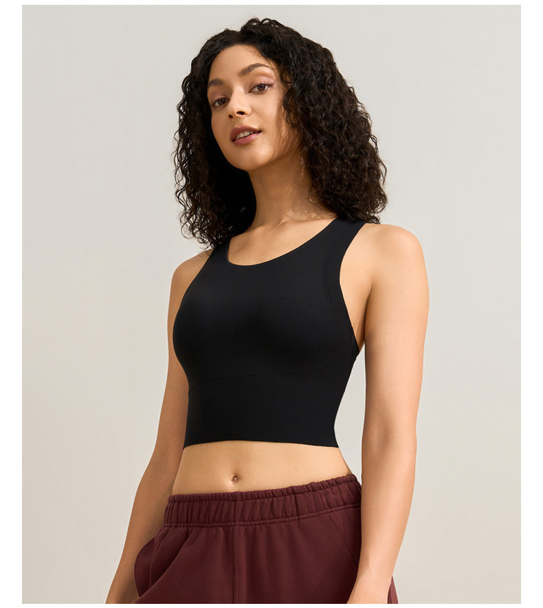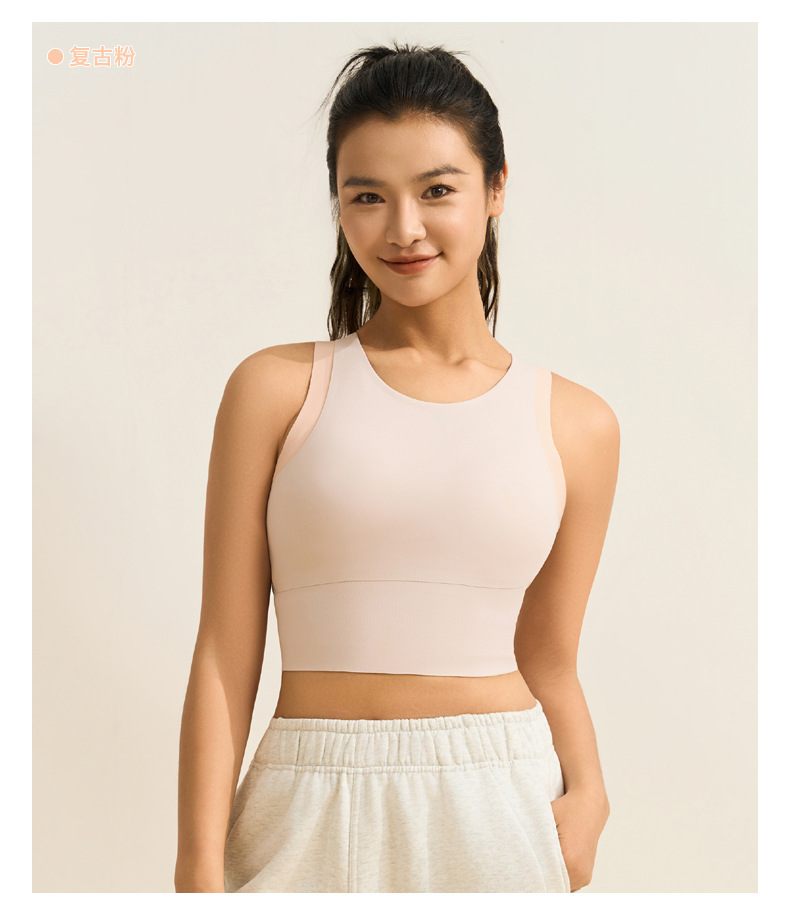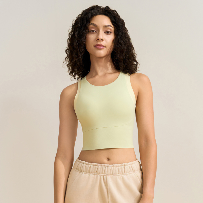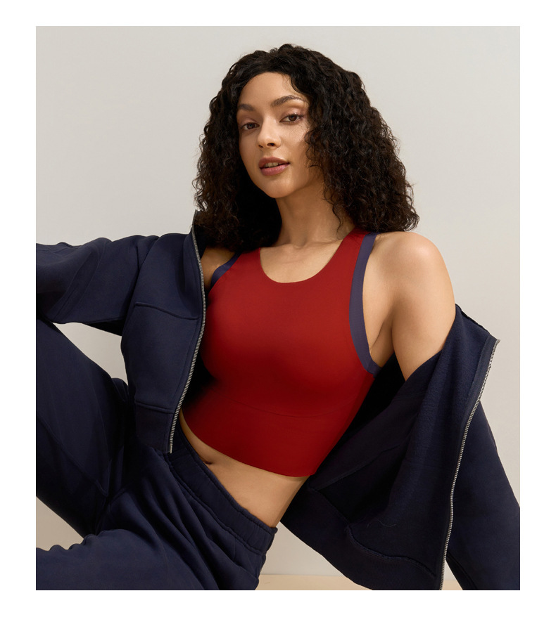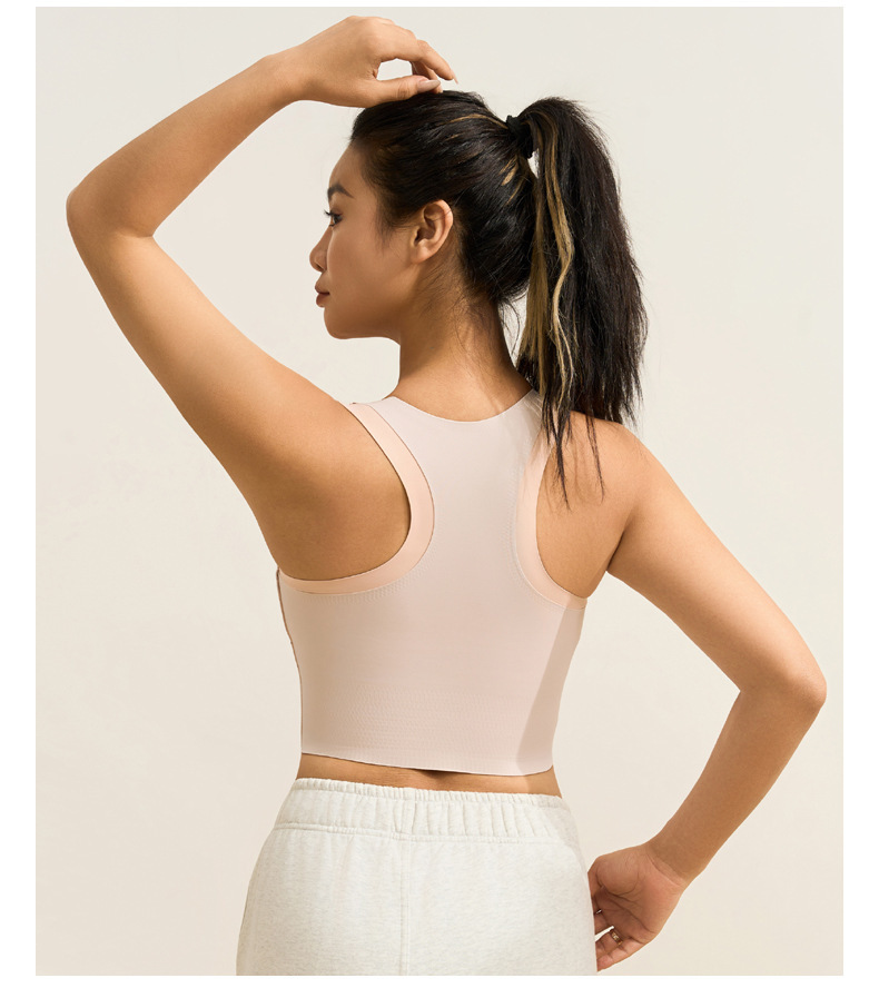 중간 강도의 스포츠 브라 여성용 외출용 무봉제 피트니스 요가 브라 탑 일체형 레이서백 요가복