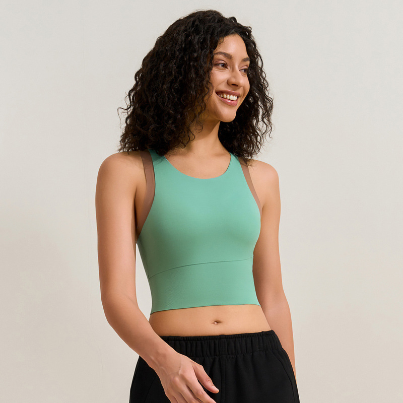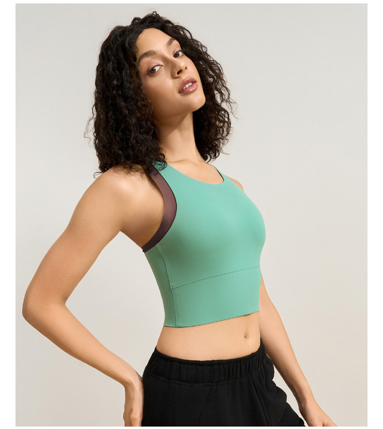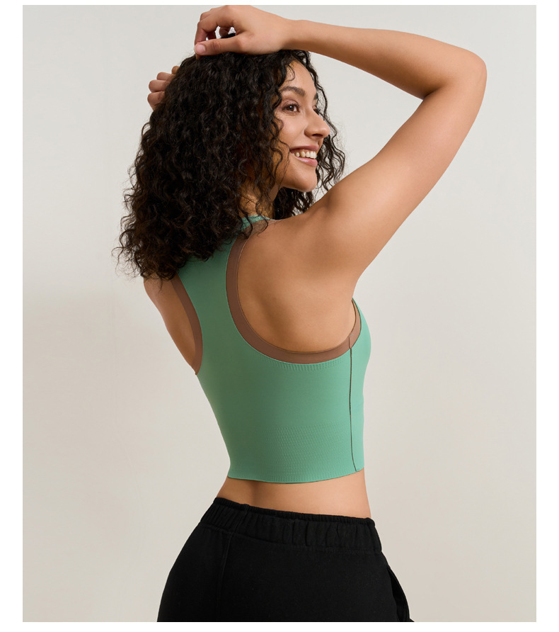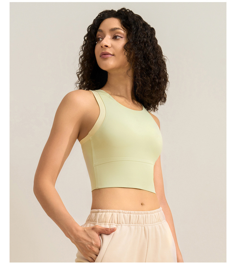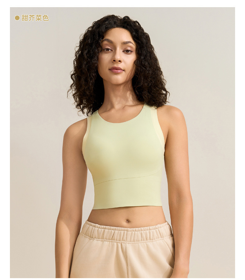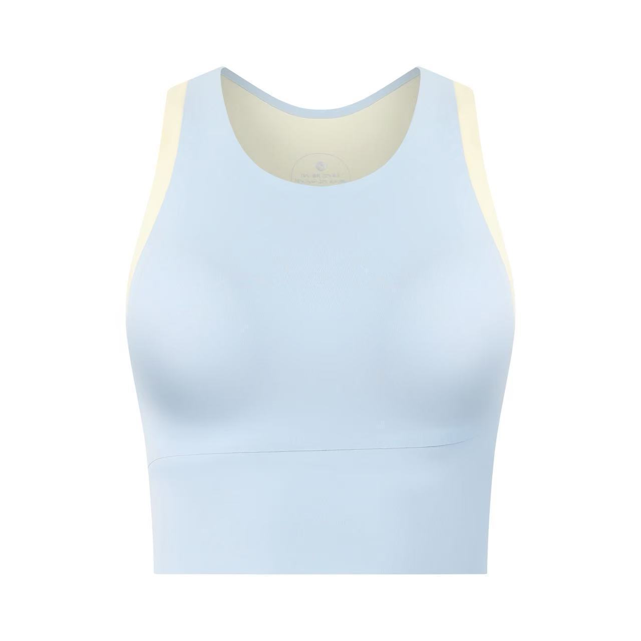 중간 강도의 스포츠 브라 여성용 외출용 무봉제 피트니스 요가 브라 탑 일체형 레이서백 요가복