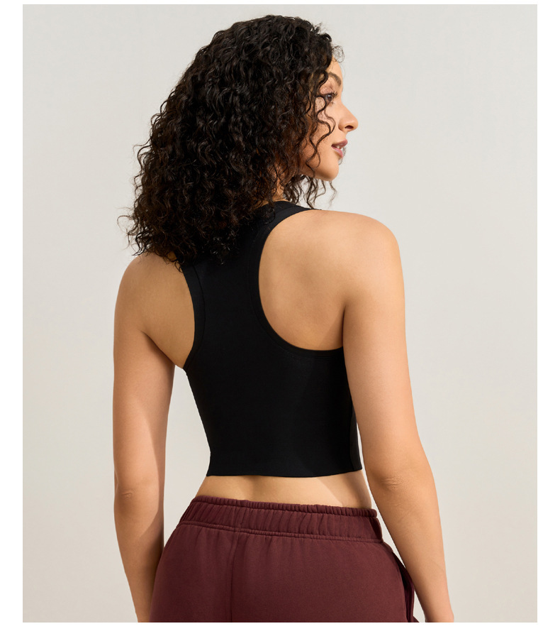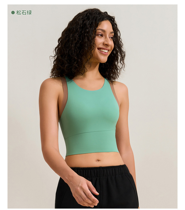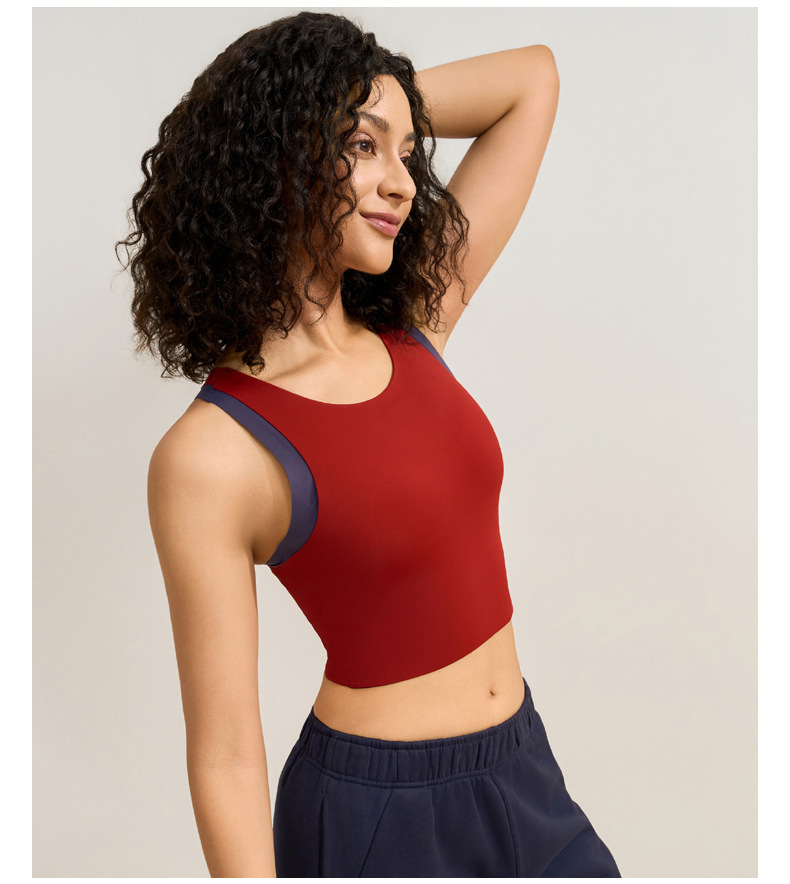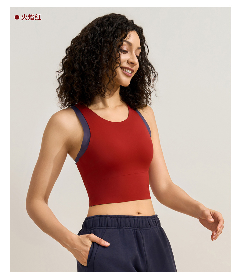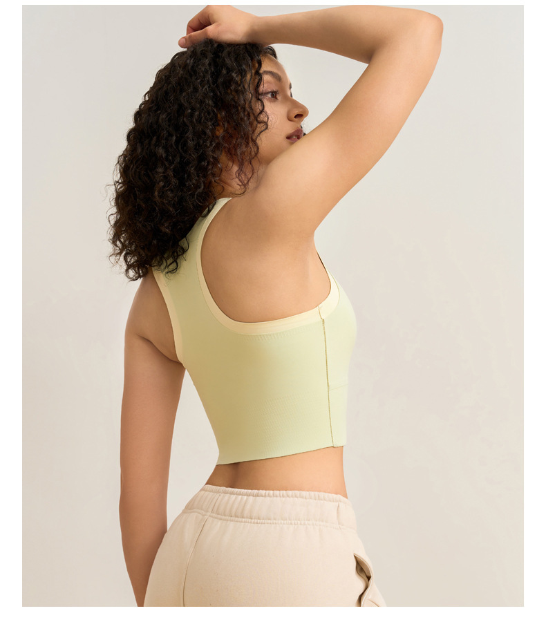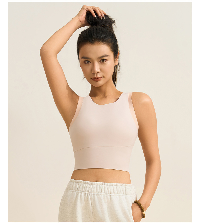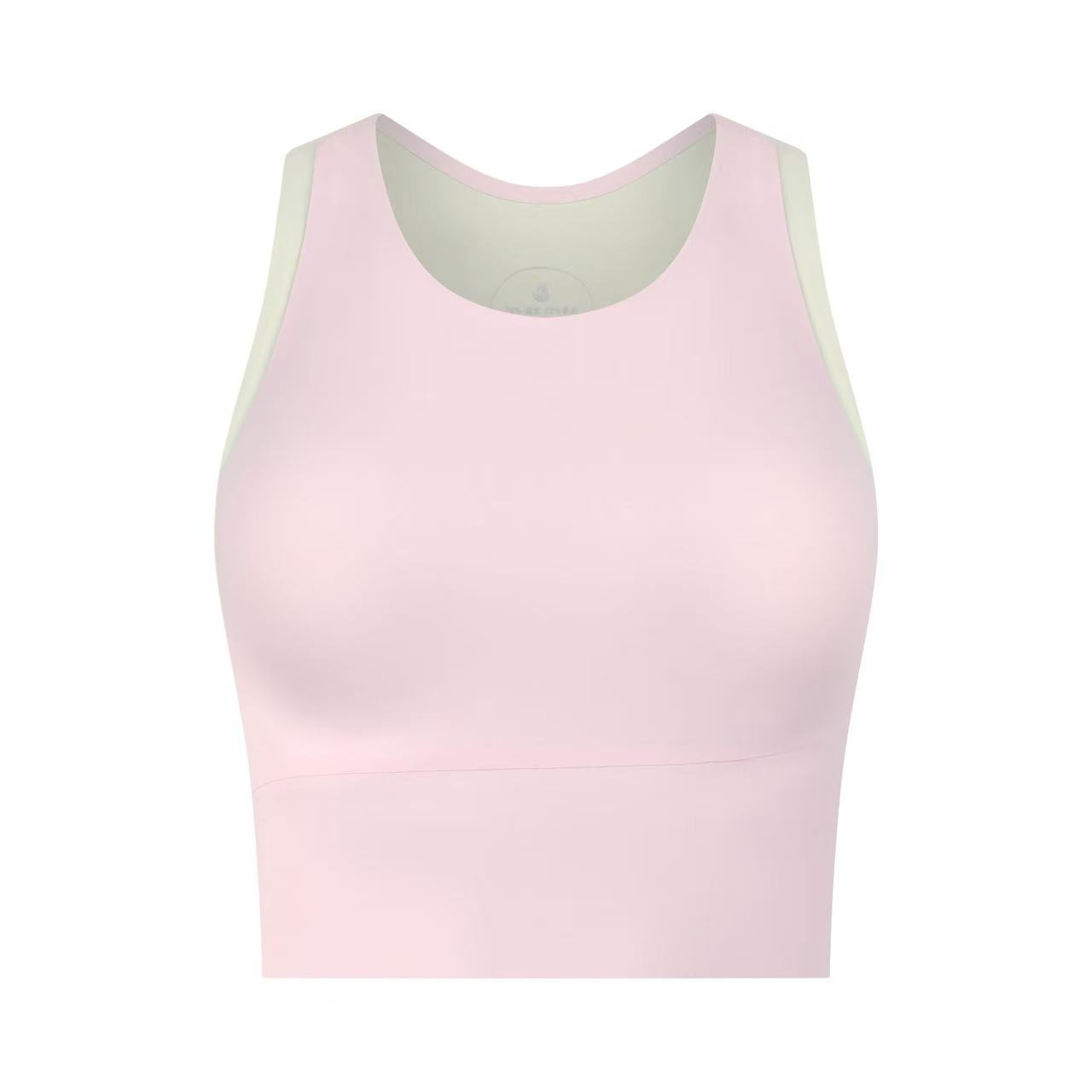 중간 강도의 스포츠 브라 여성용 외출용 무봉제 피트니스 요가 브라 탑 일체형 레이서백 요가복