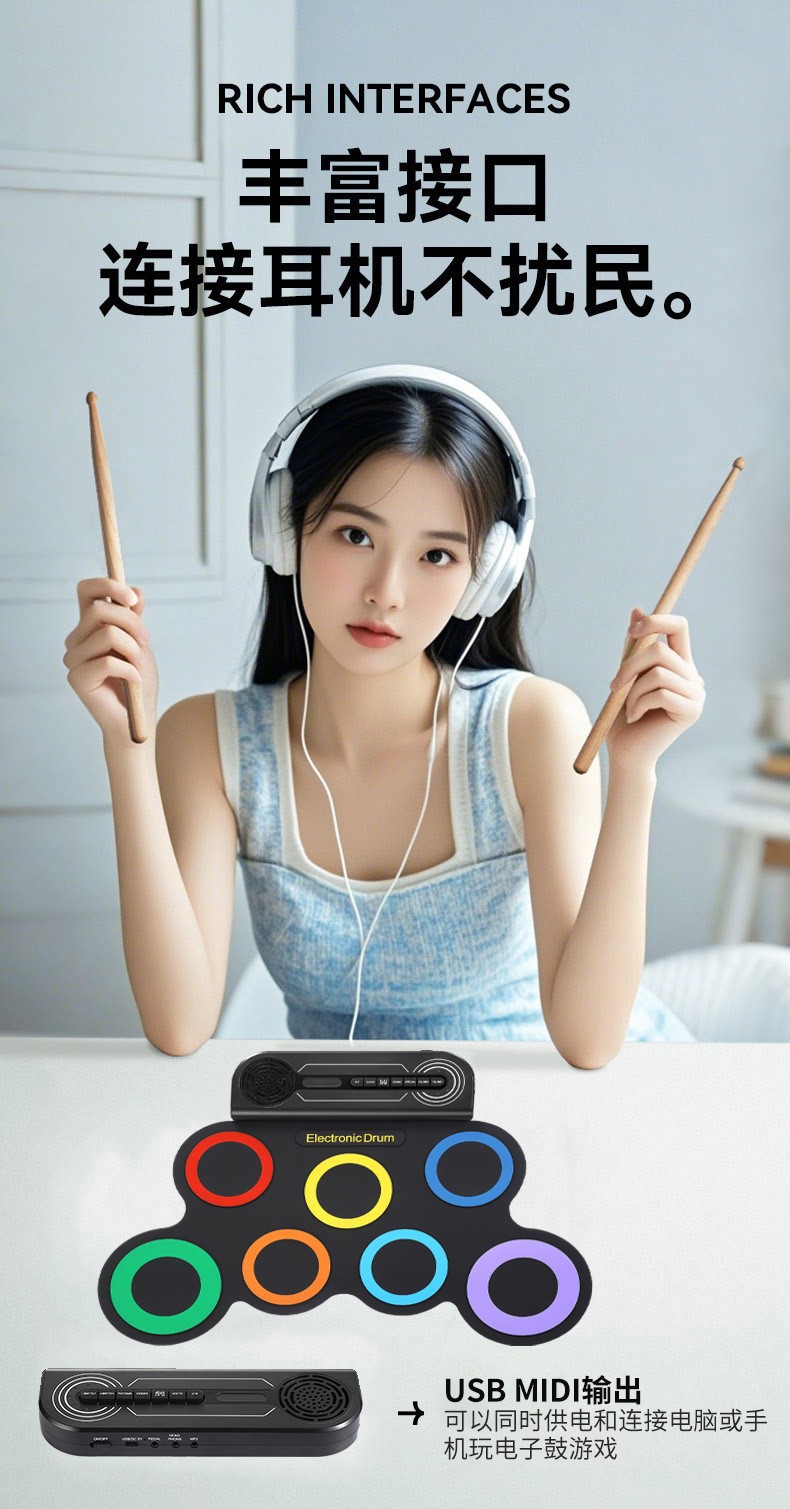 손으로 말아서 사용하는 전자 드럼 어린이 교육용 게임 드럼 접이식 전자 드럼 악기 제조업체 공급스토어 가기