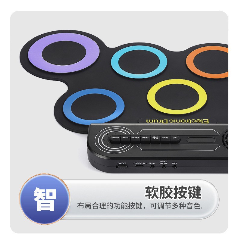 손으로 말아서 사용하는 전자 드럼 어린이 교육용 게임 드럼 접이식 전자 드럼 악기 제조업체 공급