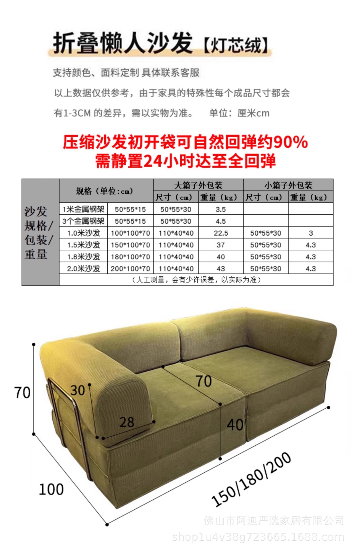 진공 압축 소파 모듈 압축 소파 롤 팩 전체 스폰지 소형 코듀로이 소파 베드스토어 가기
