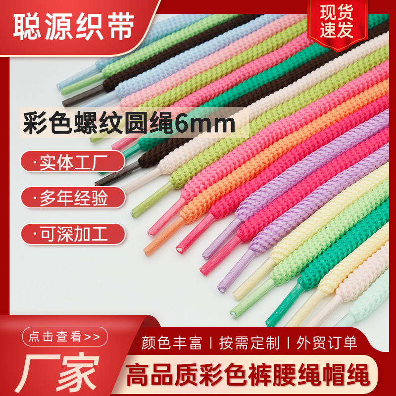 제조업체 맞춤형 컬러 나선형 라운드 로프 6mm 폴리에스터 컬러 라운드 로프 의류 부자재 후드끈 도매