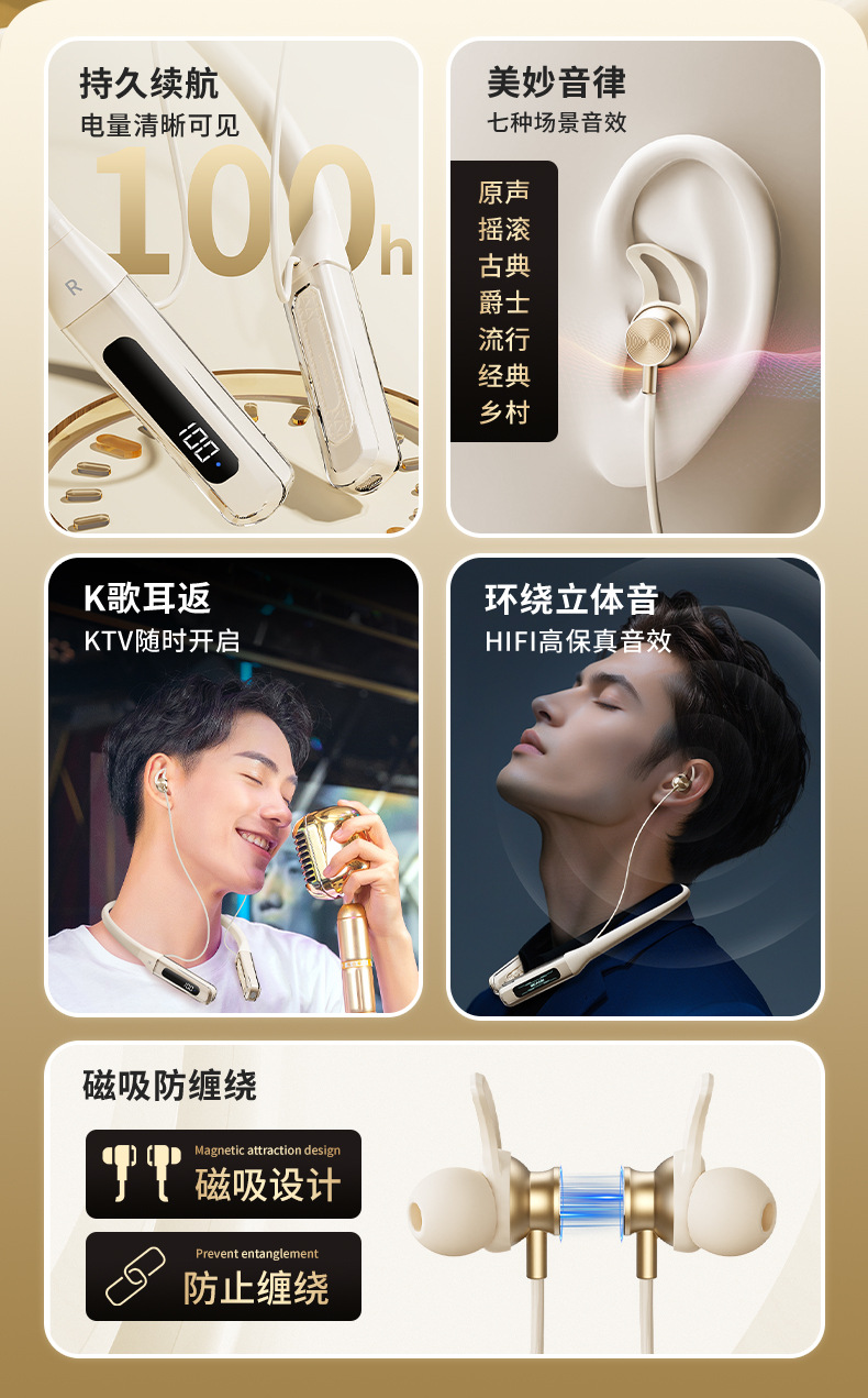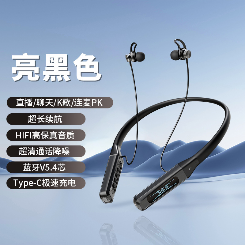2025 새로운 스타일의 홀터넥 블루투스 헤드셋, 이어폰형 소음 감소, 고품질 스포츠 e스포츠 중저음 테이크아웃 노래방 무선스토어 가기