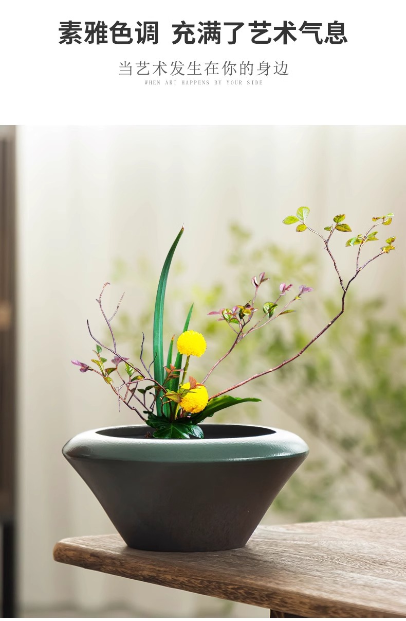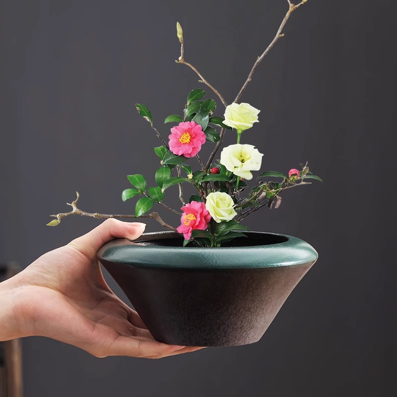 꽃꽂이, 수레차, 수레차 화분, 가마 변형 세라믹 화분, 구리주머니, 담금초, 수경재배용 특수 녹색 식물 화분, 가정용 장식 화분