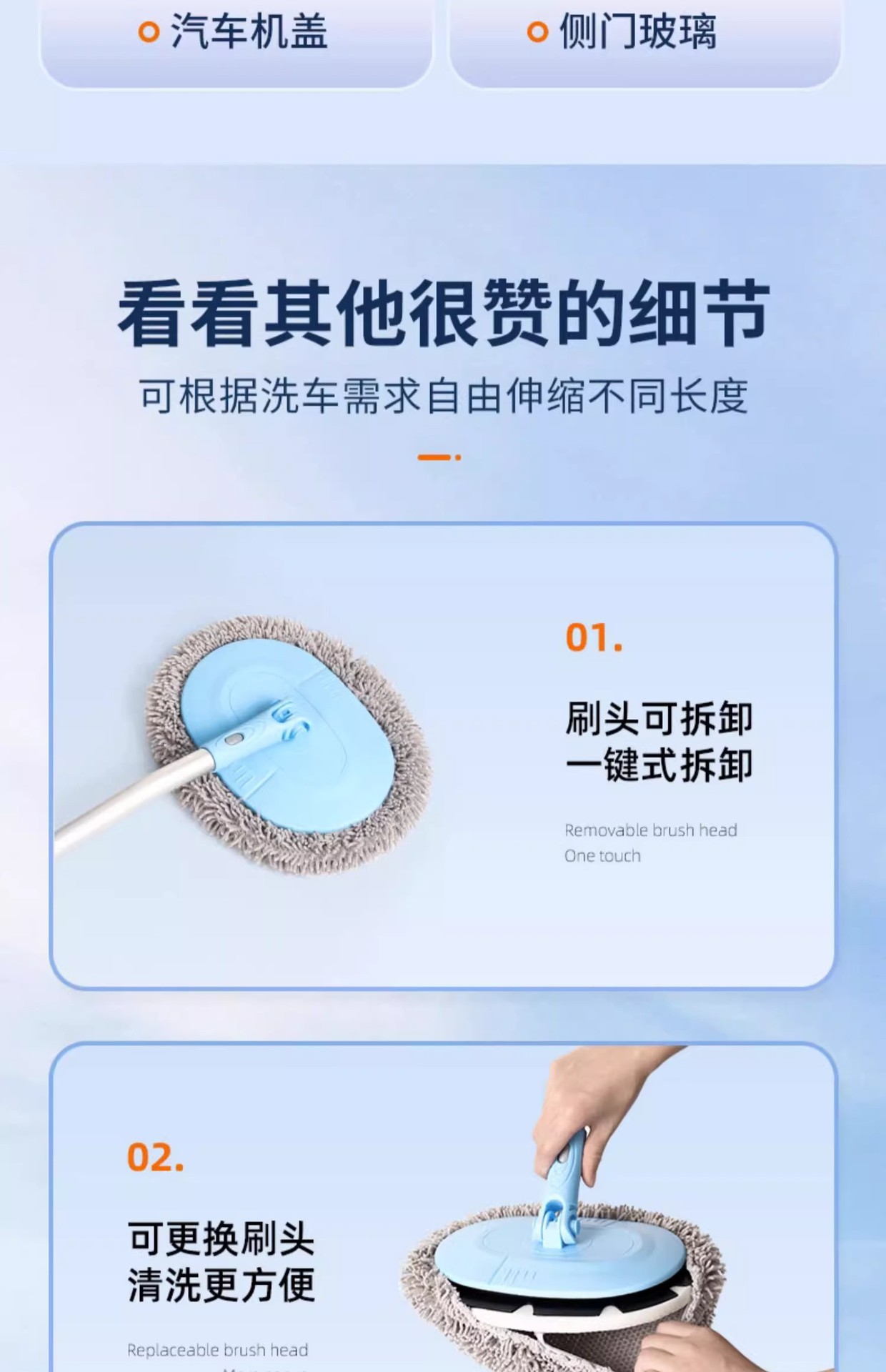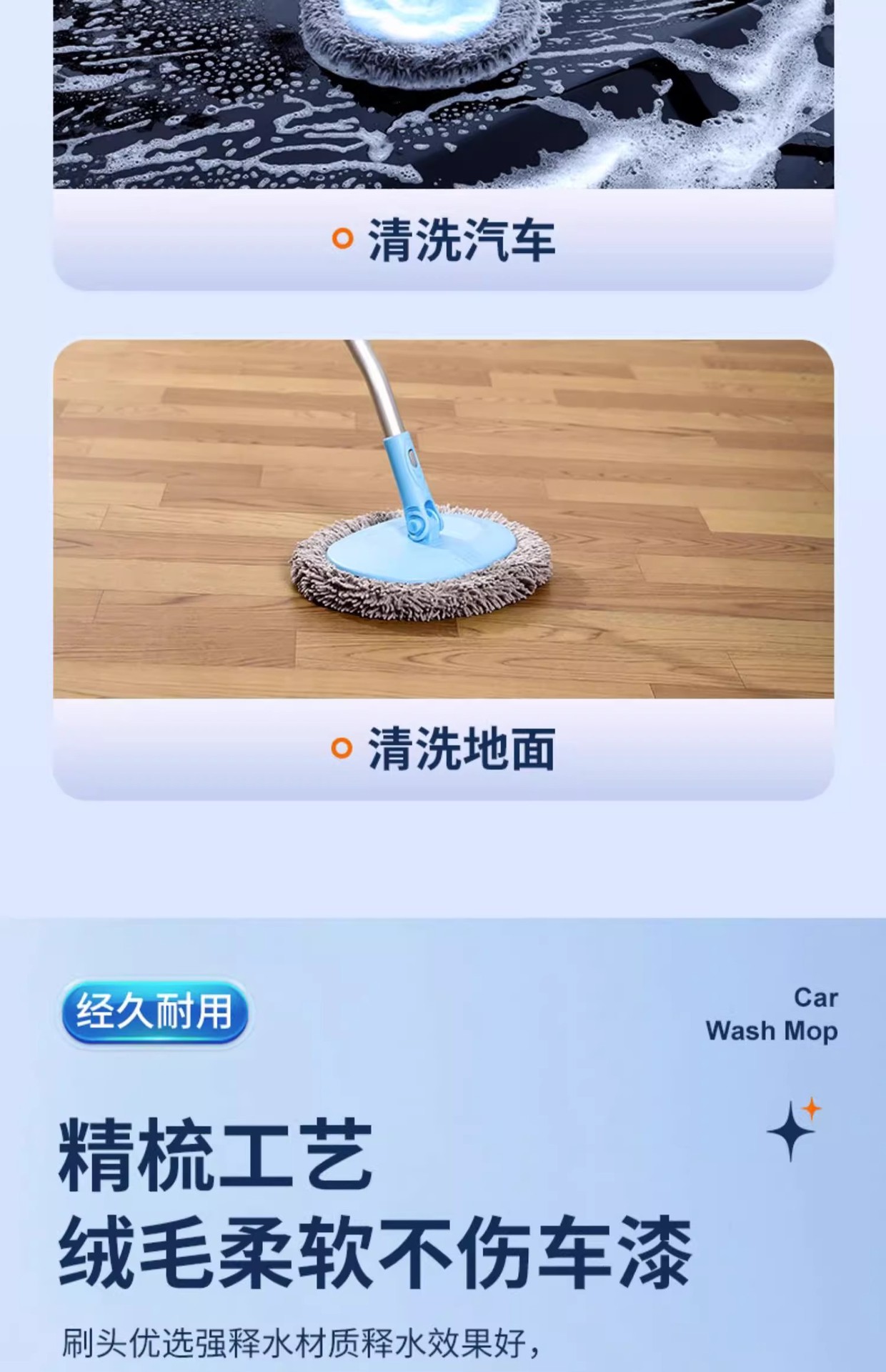 • 15도 곡선 세차걸레 + 예비 브러시 천
