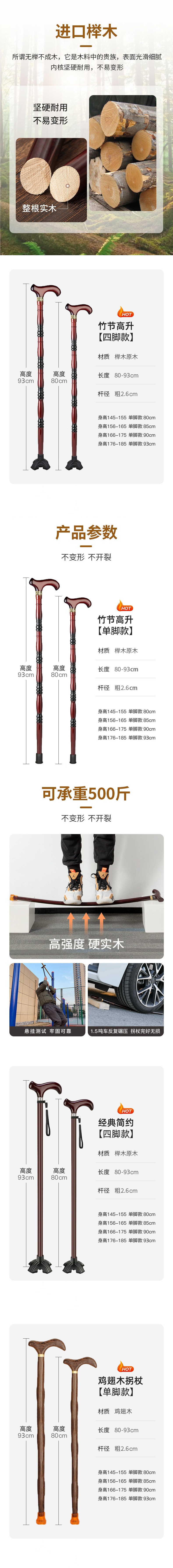 노인용 원목 지팡이, 노인용 4발 미끄럼 방지 지팡이, 경량 수도꼭지, 마호가니 난간, 등산용 목재스토어 가기
