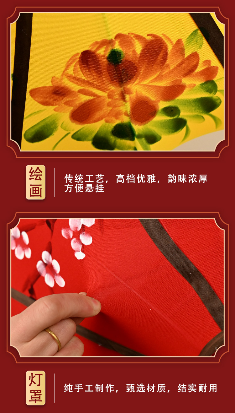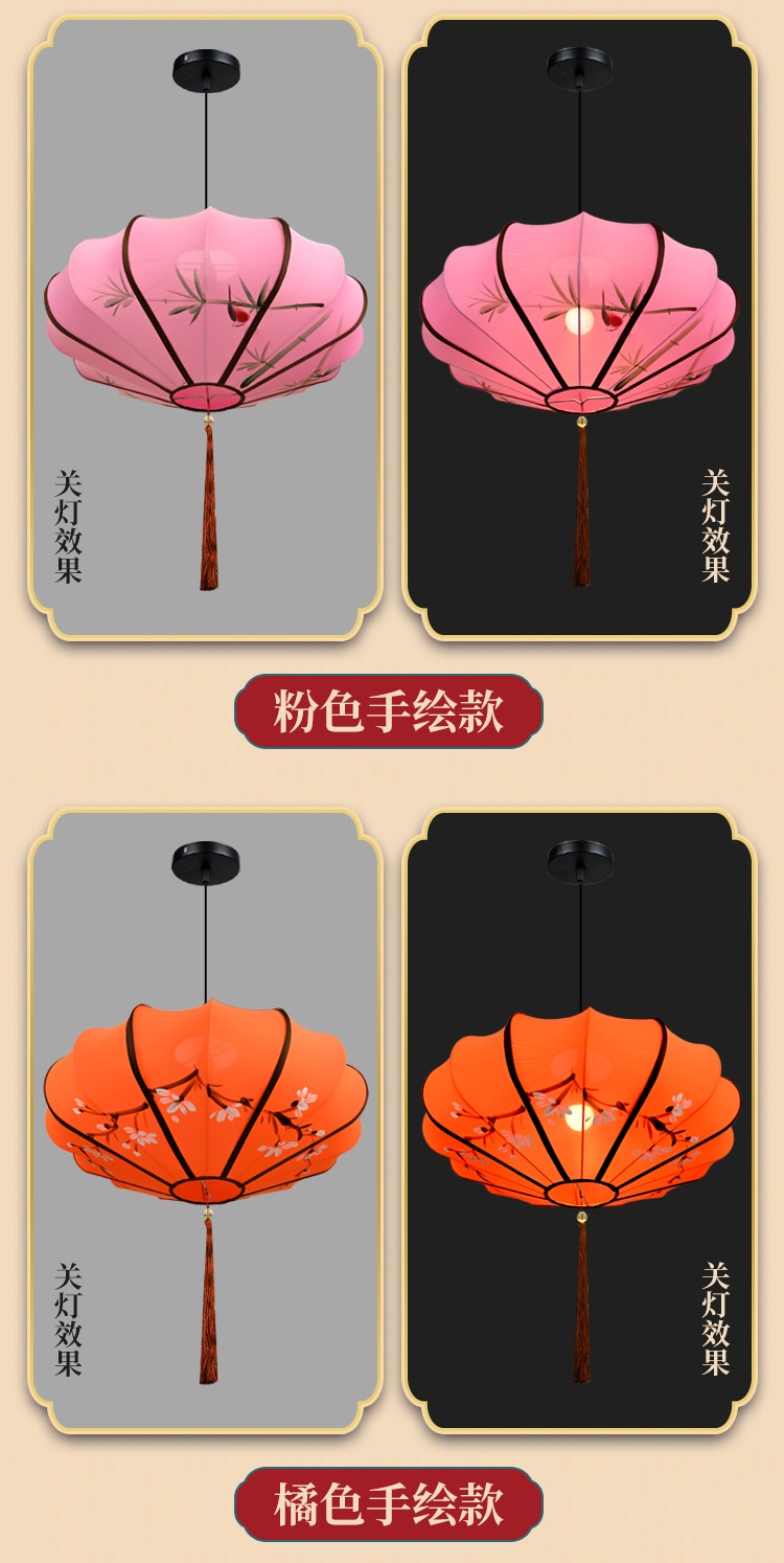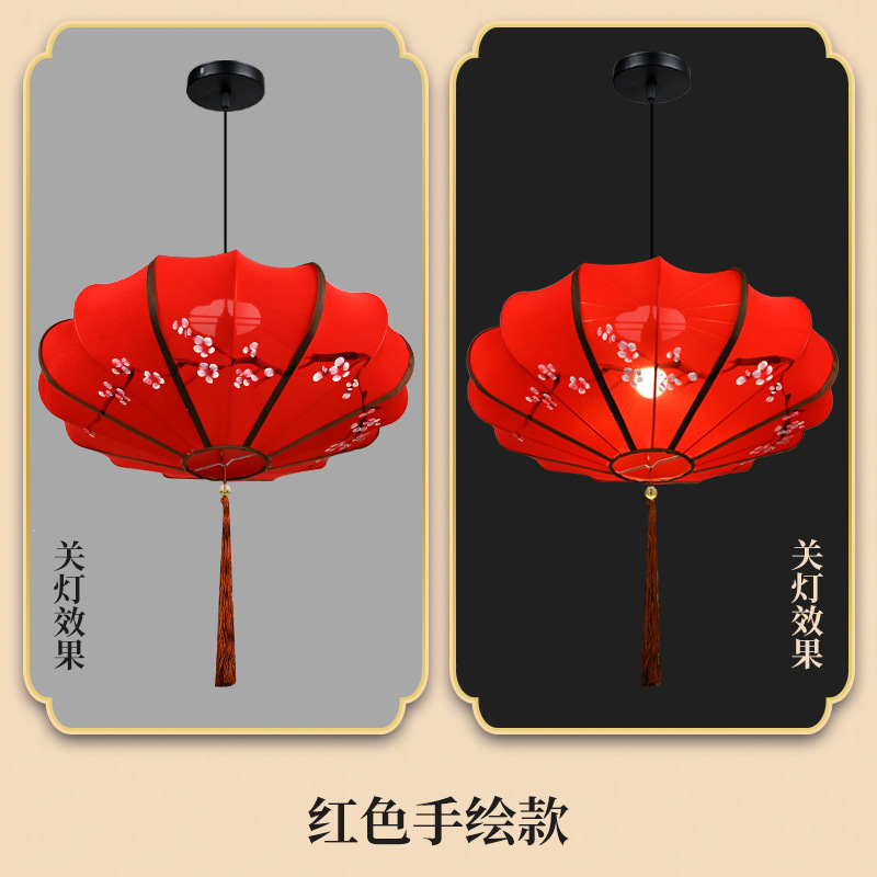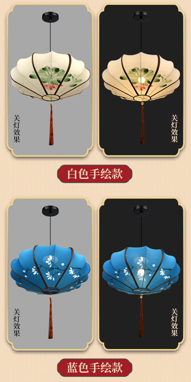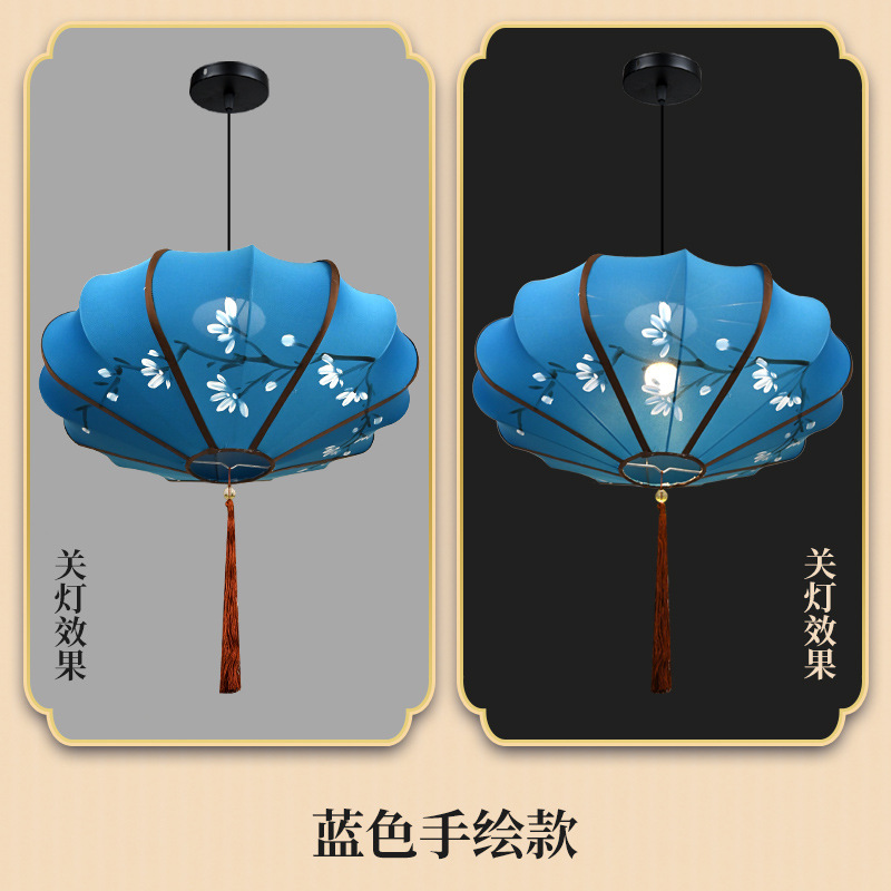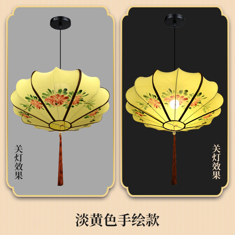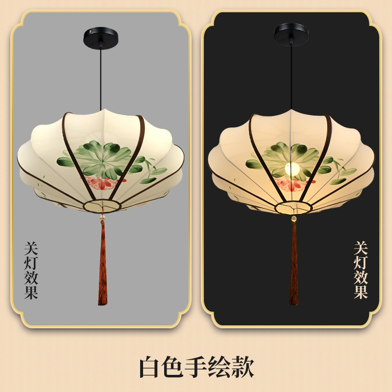 UFO 손으로 그린 풍경 모조 새로운 중국 스타일 샹들리에 클래식 중국 스타일 패브릭 레스토랑 전골 레스토랑 호텔 랜턴 호텔스토어 가기