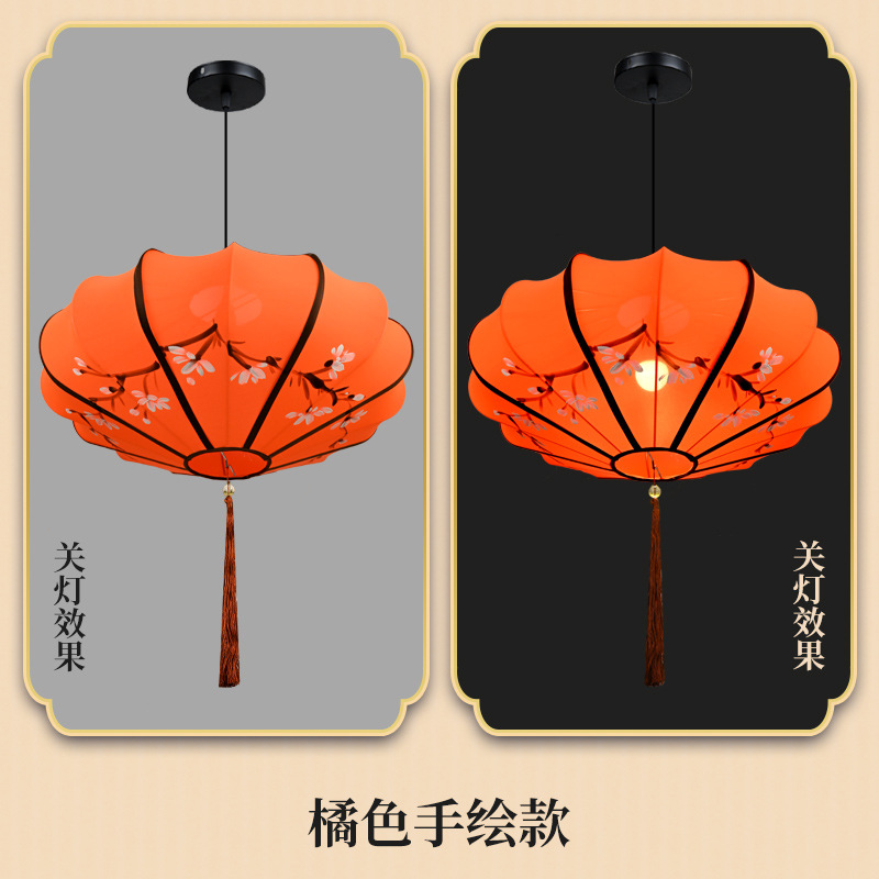UFO 손으로 그린 풍경 모조 새로운 중국 스타일 샹들리에 클래식 중국 스타일 패브릭 레스토랑 전골 레스토랑 호텔 랜턴 호텔
