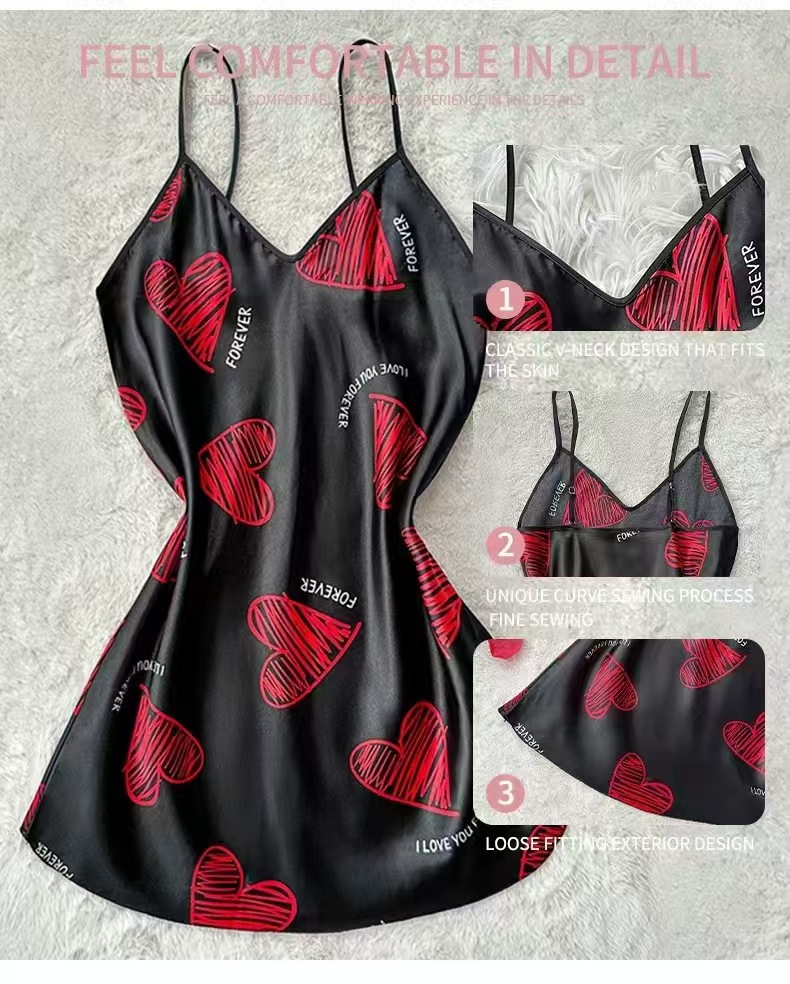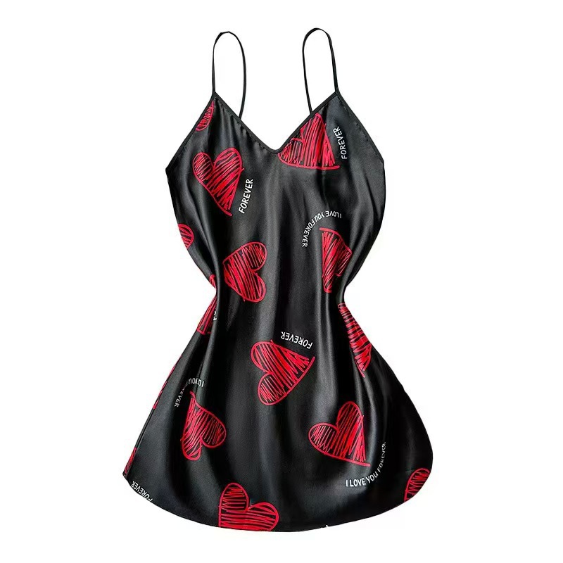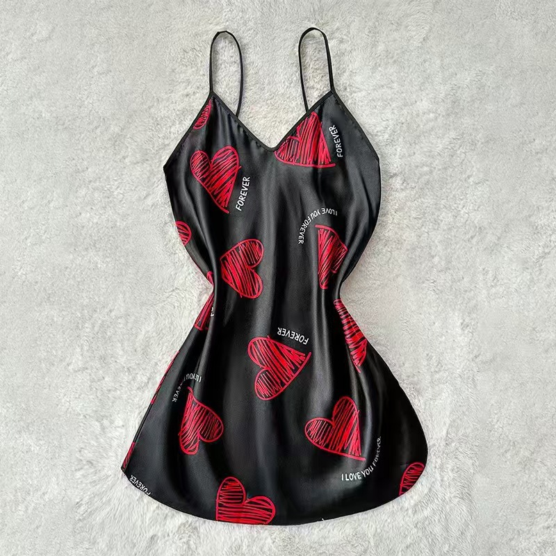 여성을위한 국경 간 유럽과 미국 스타일의 잠옷 여름 서스펜더 잠옷 사랑 섹시한 잠옷 시뮬레이션 실크 섹시한 백리스 여성 잠옷