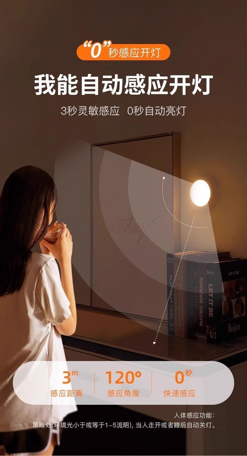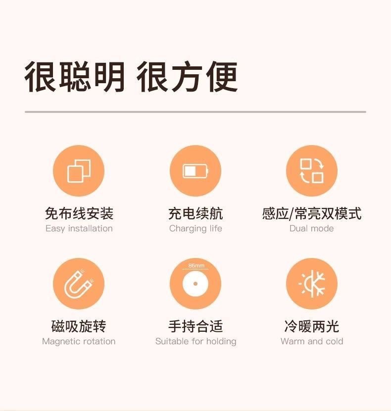 인체 유도 LED 옷장 조명, 무선 자기 흡입, 높은 배터리 수명, 조명 제어, 침실 야간 조명, 펀치 없이 설치스토어 가기