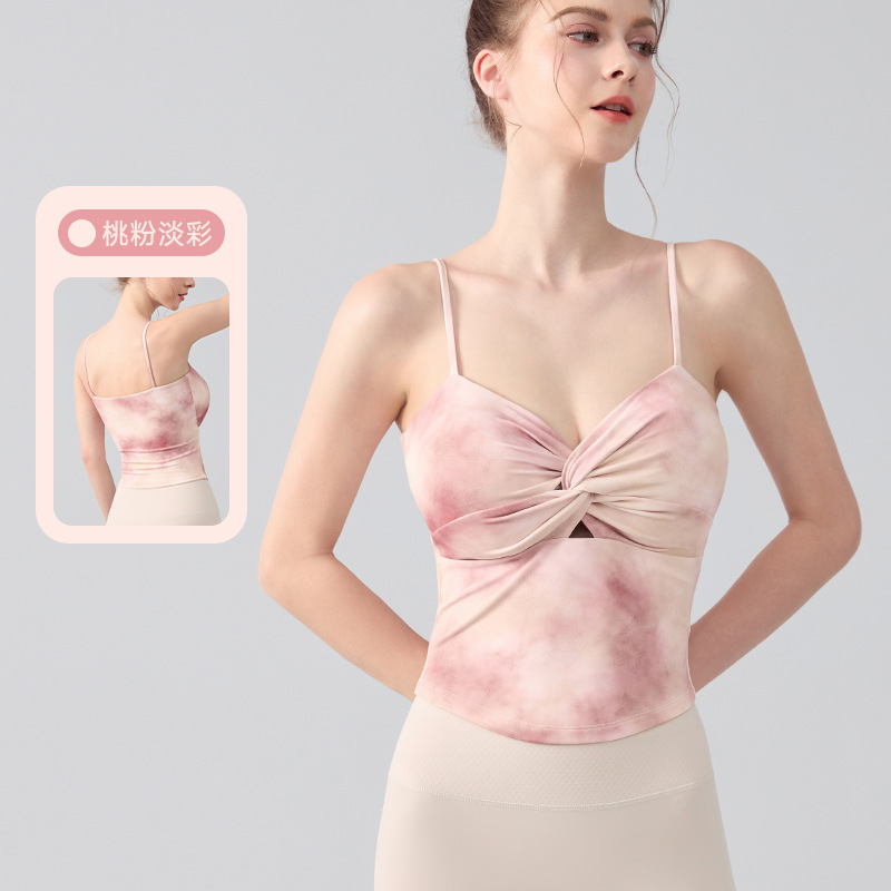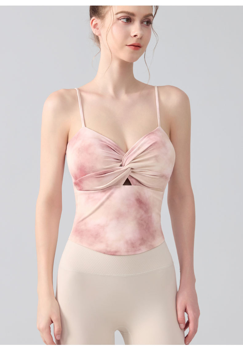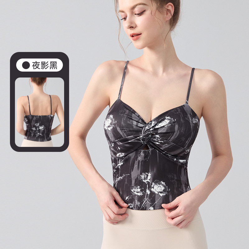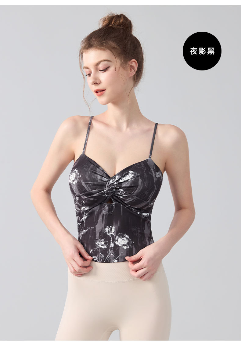 요가복, 가슴 패드가 있는 여성용 섹시 트위스트 슬링 스포츠 조끼, 프린트 슬림핏 이너 피트니스 탑스토어 가기