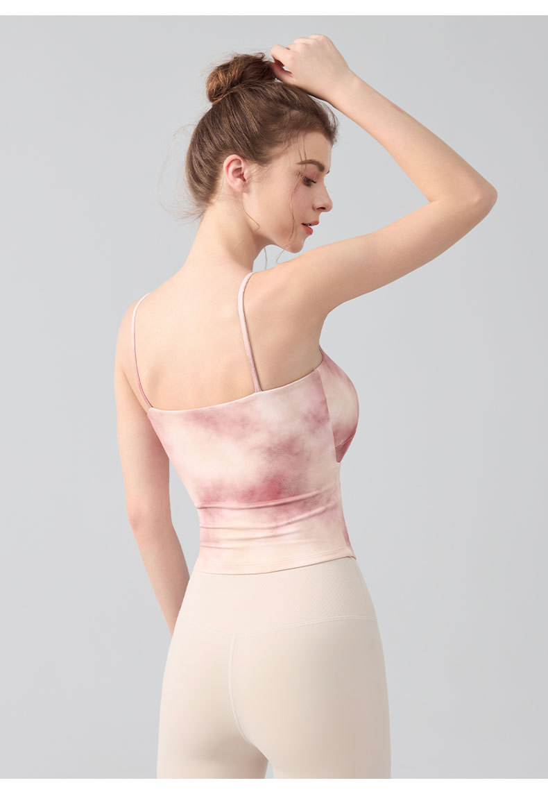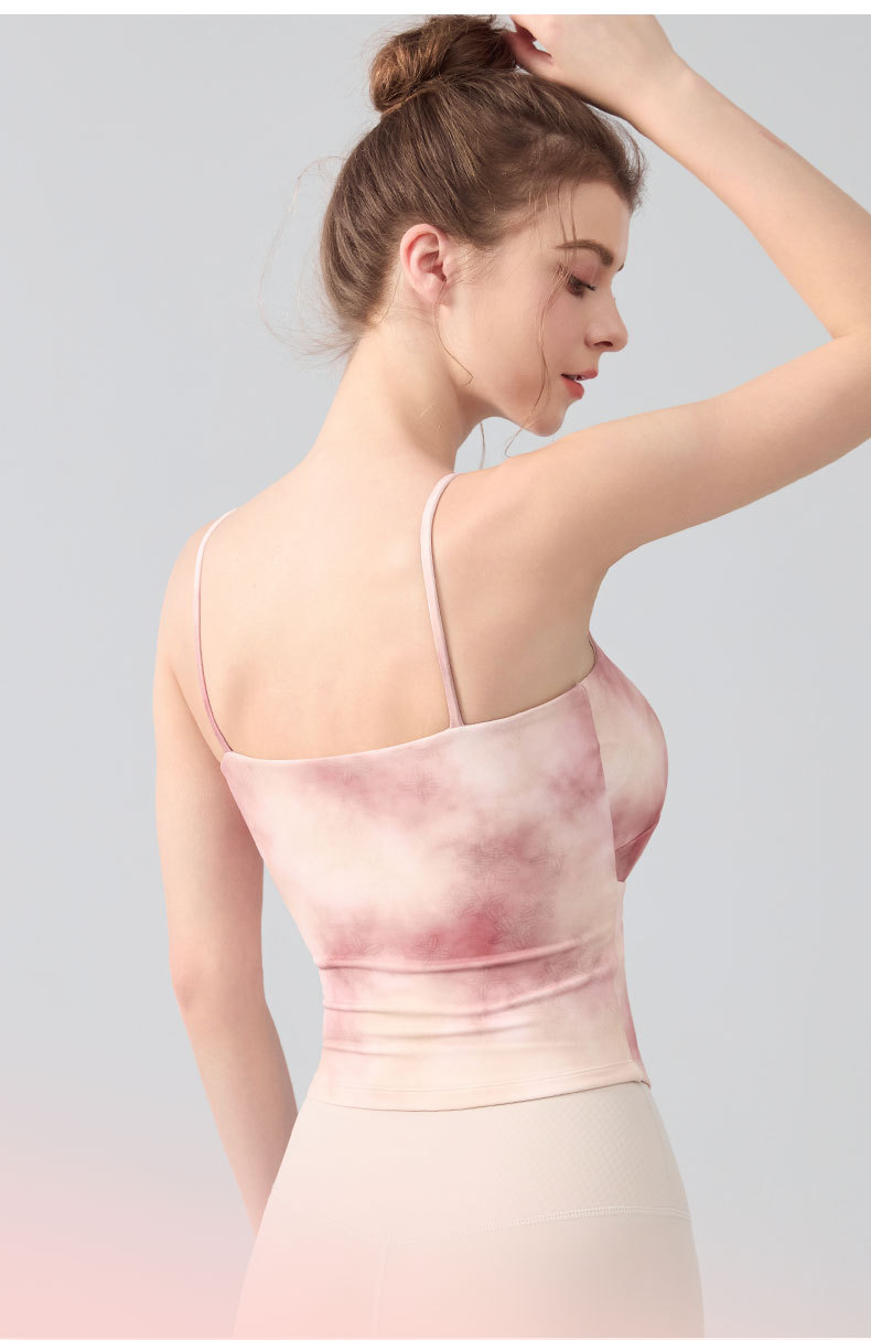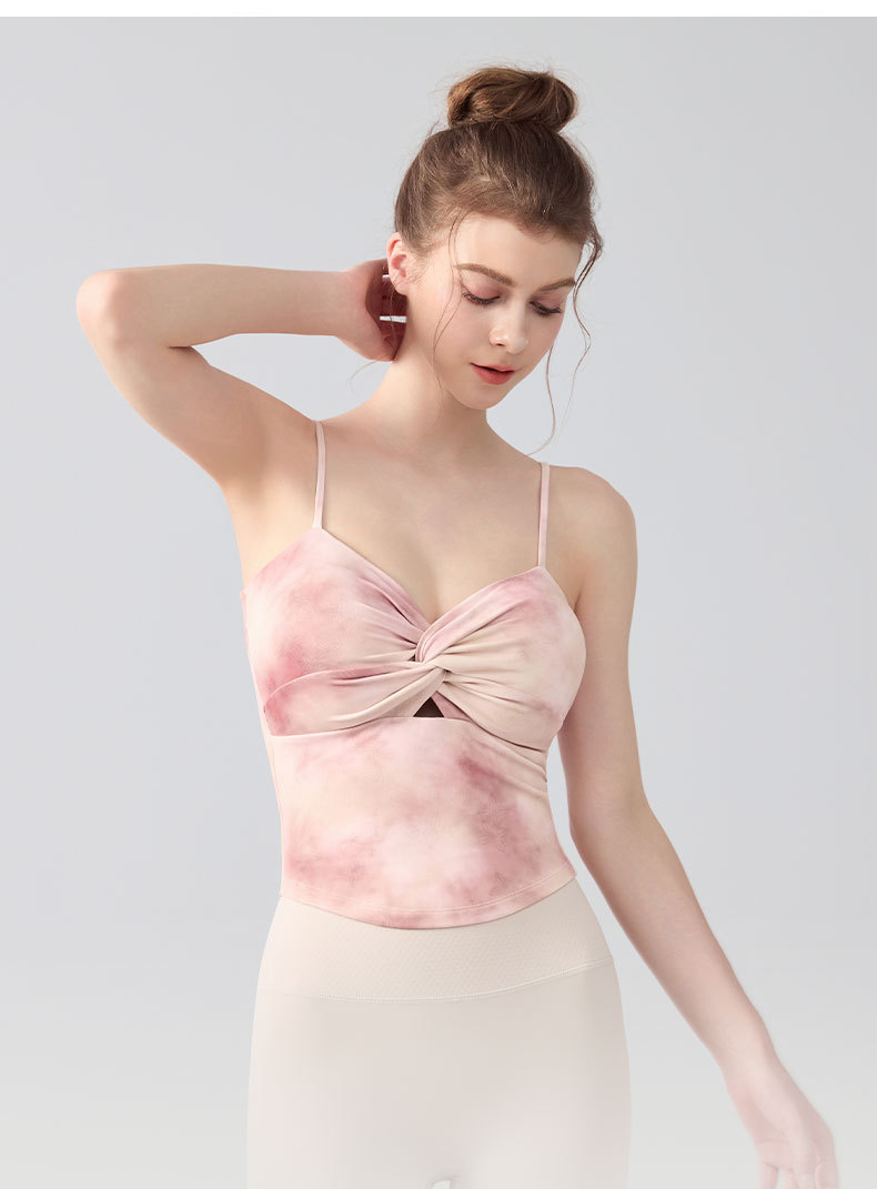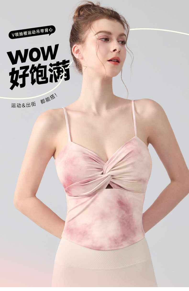 요가복, 가슴 패드가 있는 여성용 섹시 트위스트 슬링 스포츠 조끼, 프린트 슬림핏 이너 피트니스 탑스토어 가기