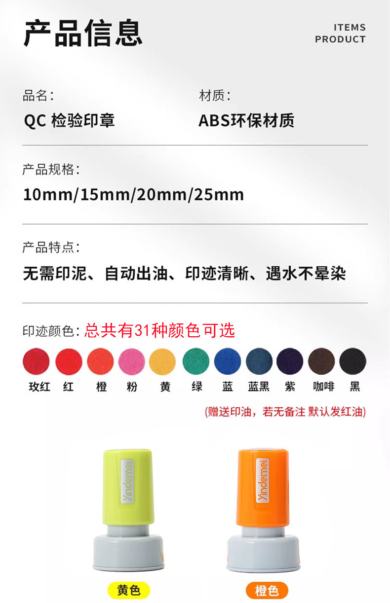 • YDM25 녹색 및 노란색 쉘(원형 25mm)에는 끈과 잉크가 함께 제공됩니다.