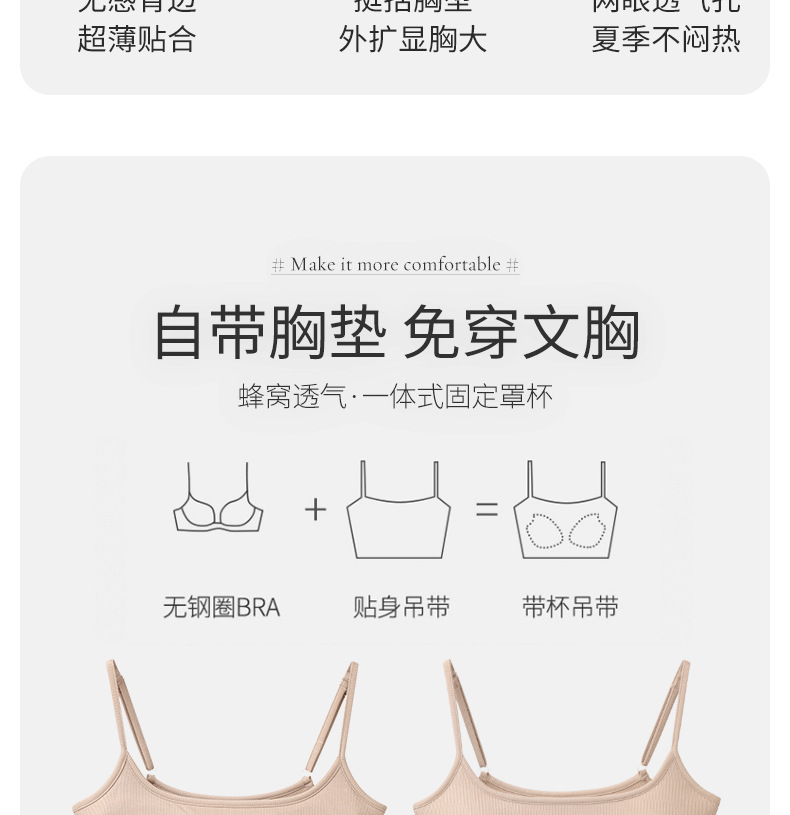 가슴이 작은 여성용 코믹 캐미솔, 가슴 확대, 가슴 패드 내장, 다용도 탑스토어 가기