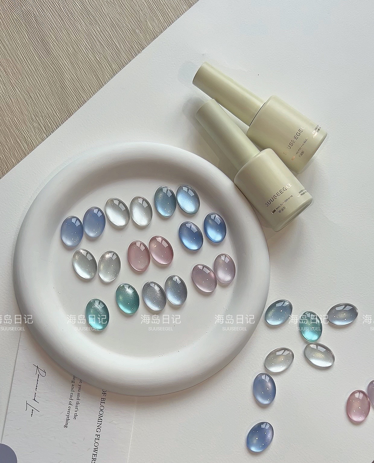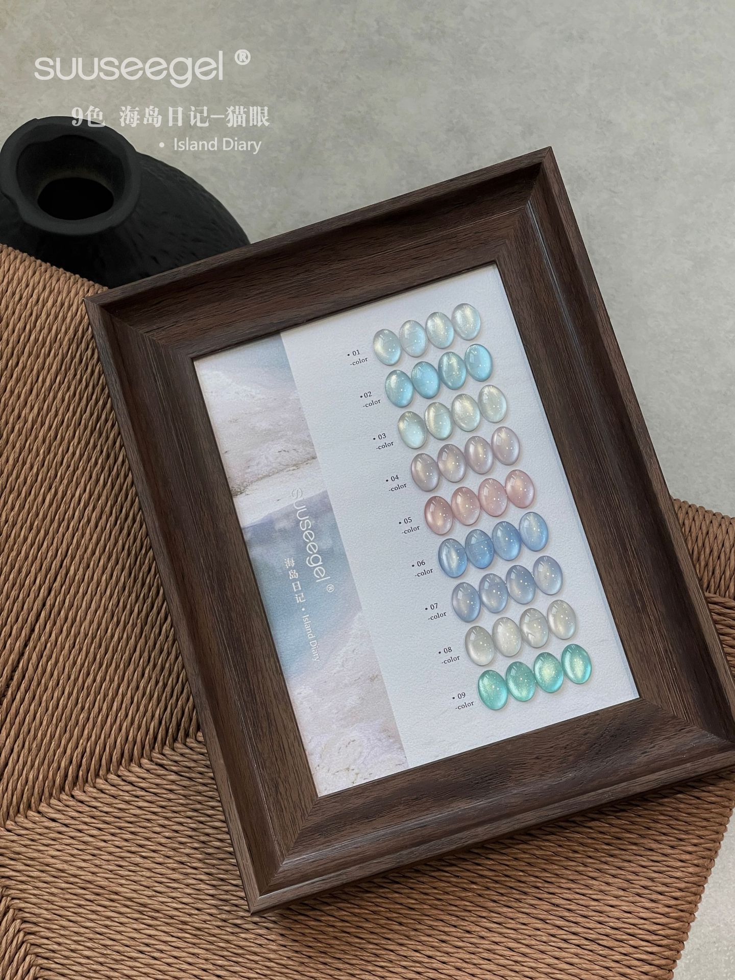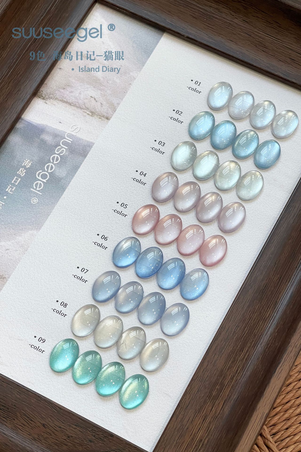 새로운 컬러 9색 아일랜드 다이어리 유리구슬 고양이 눈 세트 매니큐어 접착제 도자기 화이트 파우더 블루 눈물 과일 고양이 눈