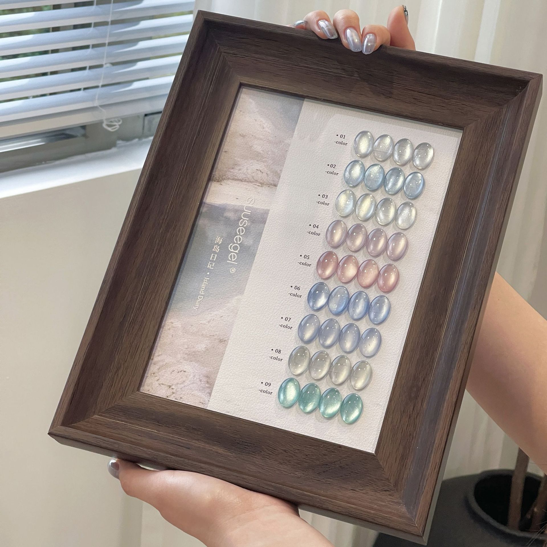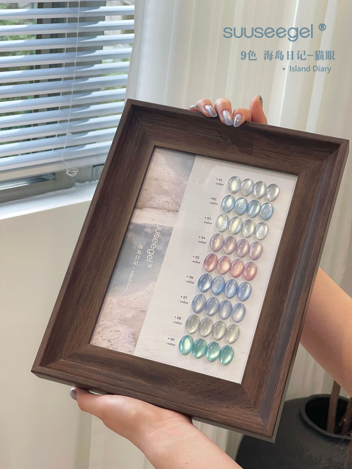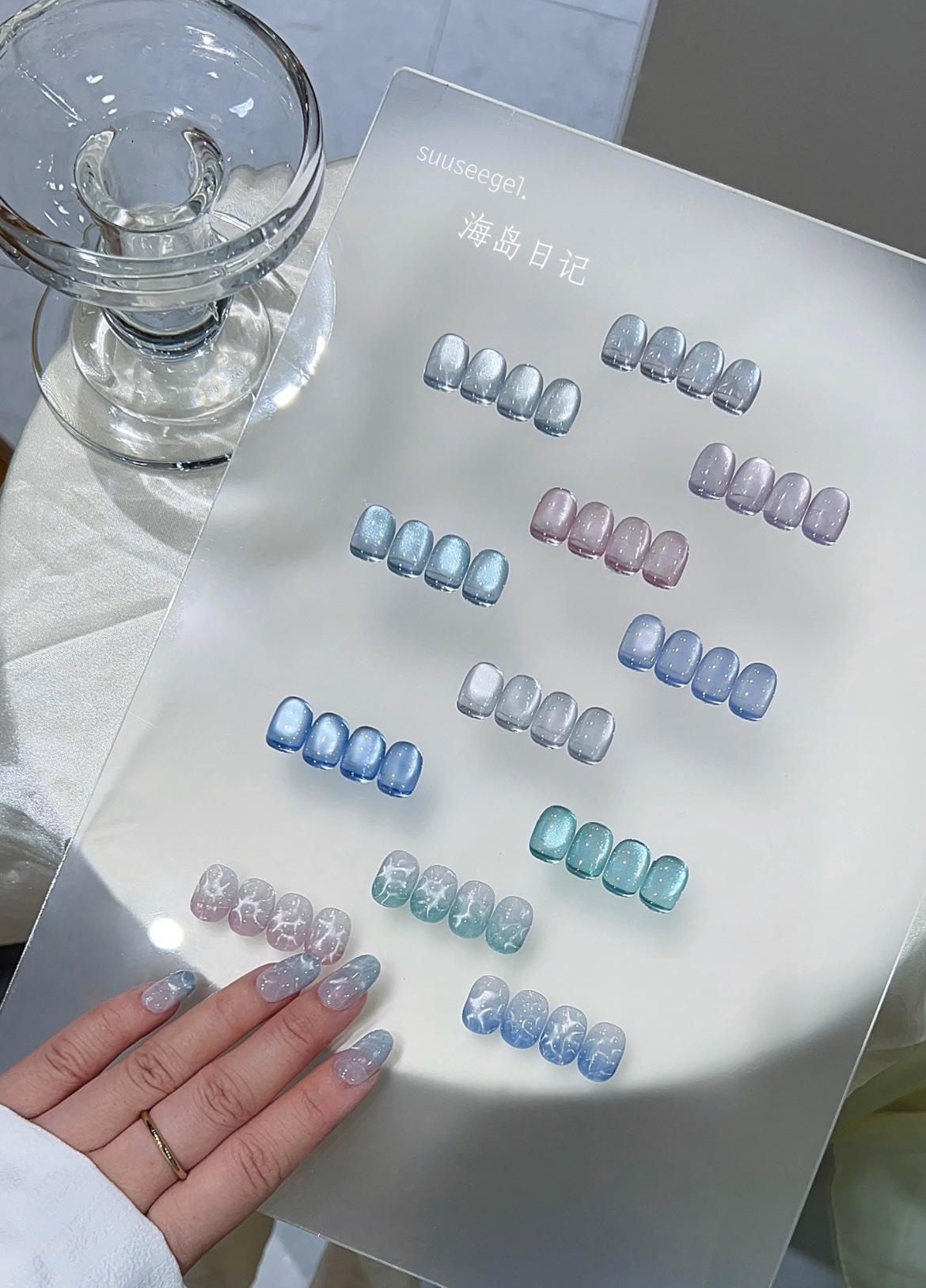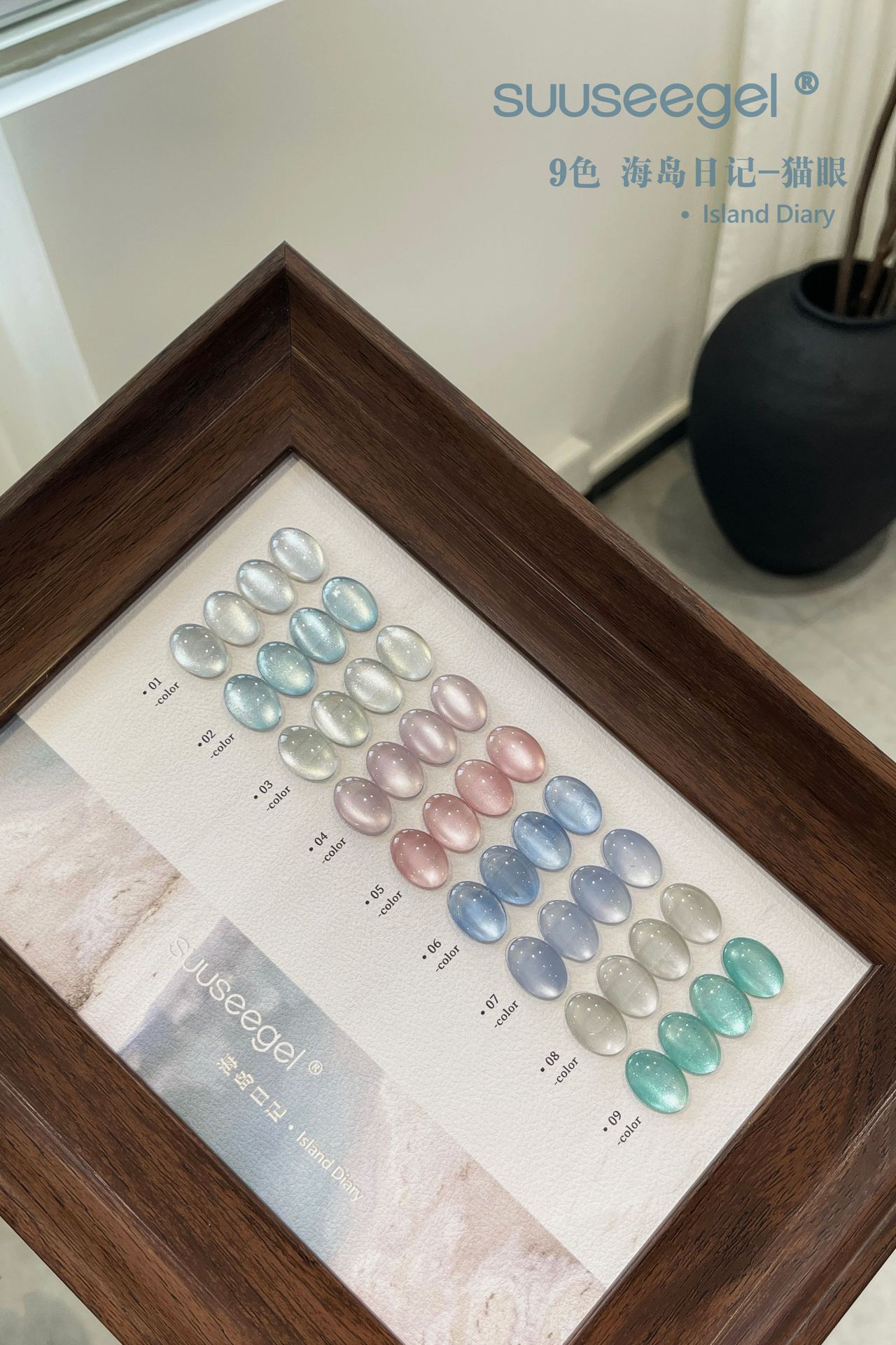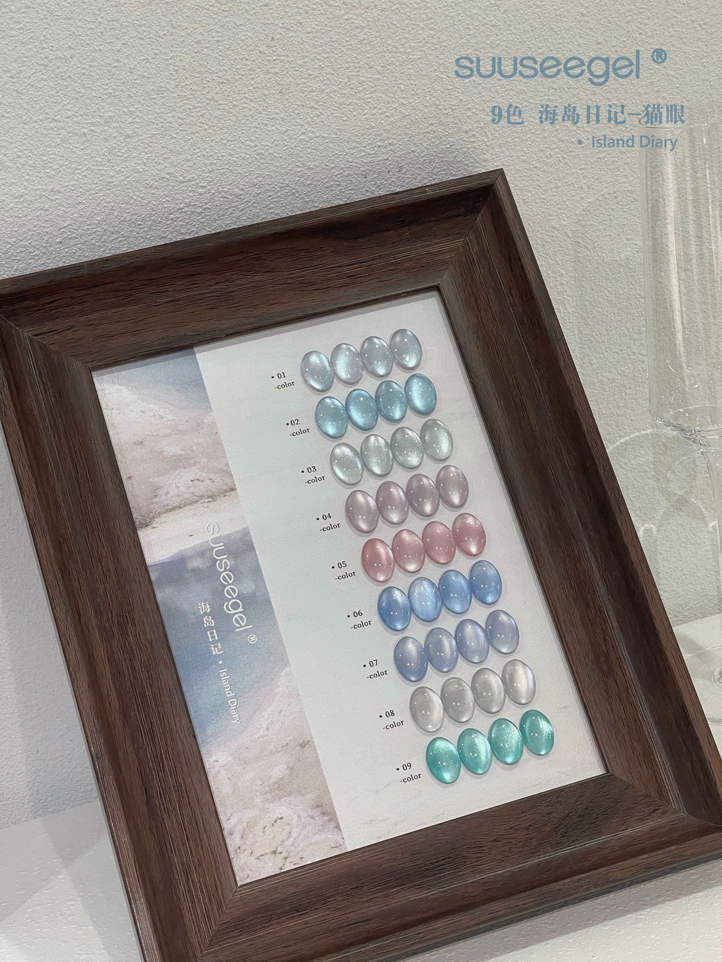 새로운 컬러 9색 아일랜드 다이어리 유리구슬 고양이 눈 세트 매니큐어 접착제 도자기 화이트 파우더 블루 눈물 과일 고양이 눈스토어 가기