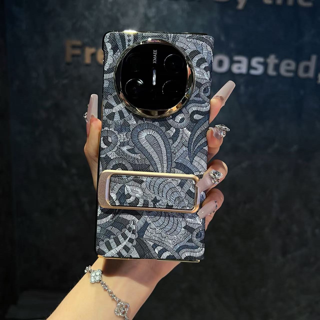 • 손목밴드 홀더 플립 가죽 케이스 [Cuiqi 캐슈 꽃]