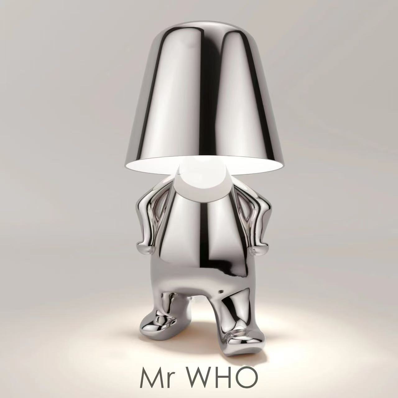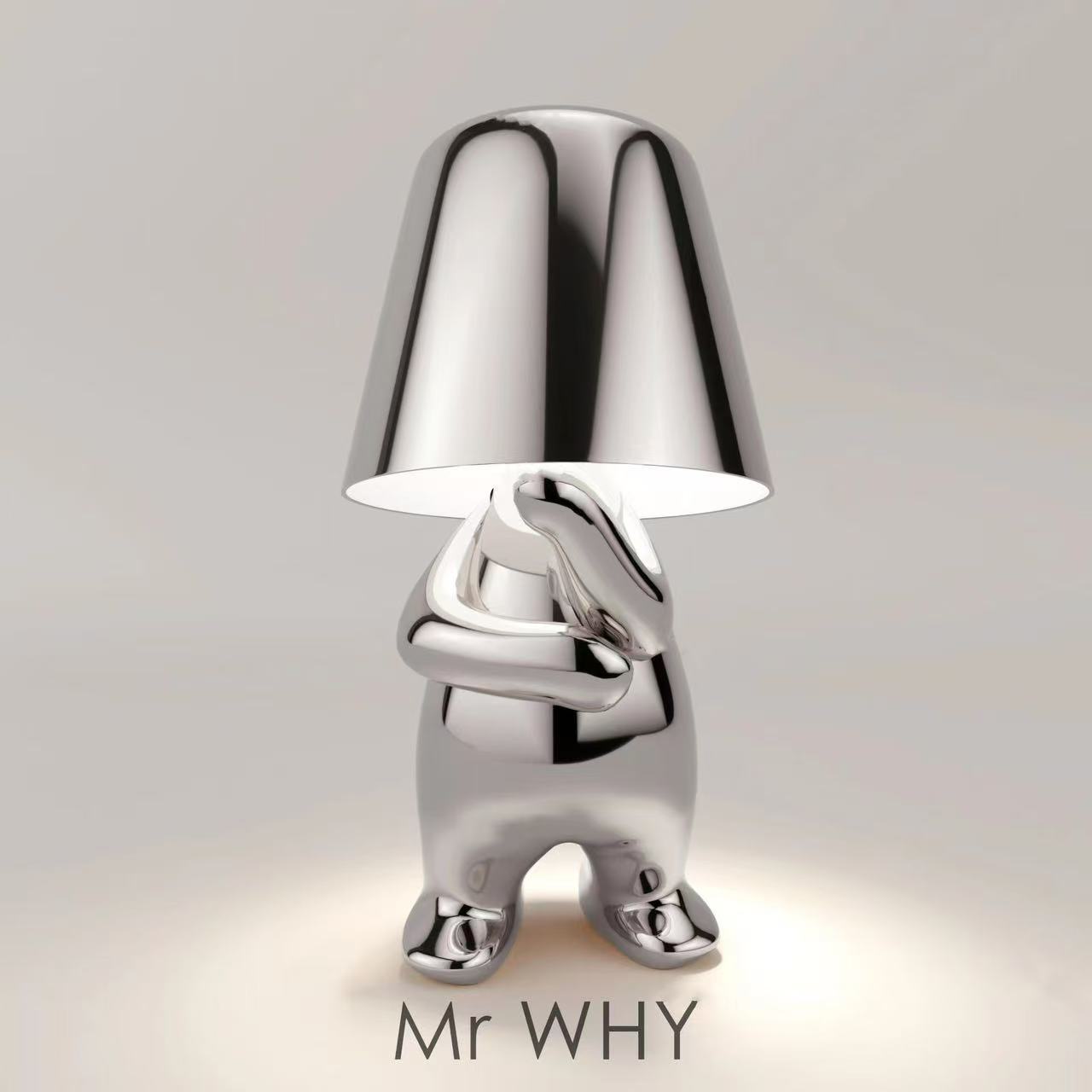 생각하는 사람 작은 골드 인형 테이블 램프 거실 침실 만화 크리 에이 티브 장식 머리맡 터치 분위기 USB 충전식 테이블 램프