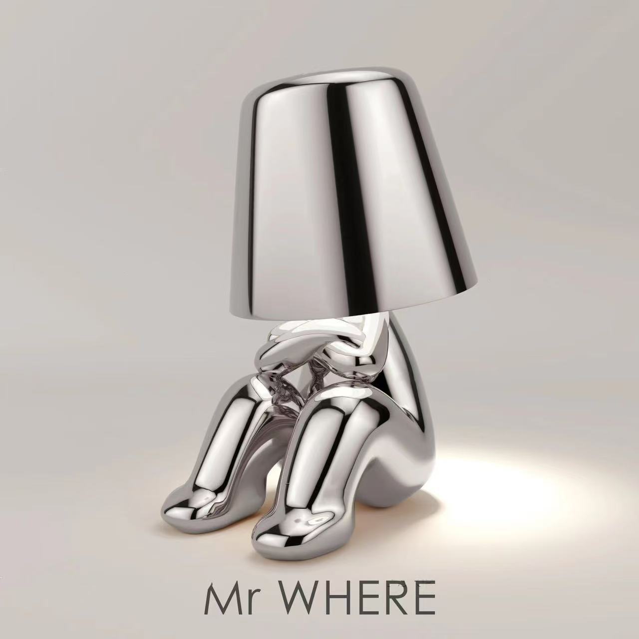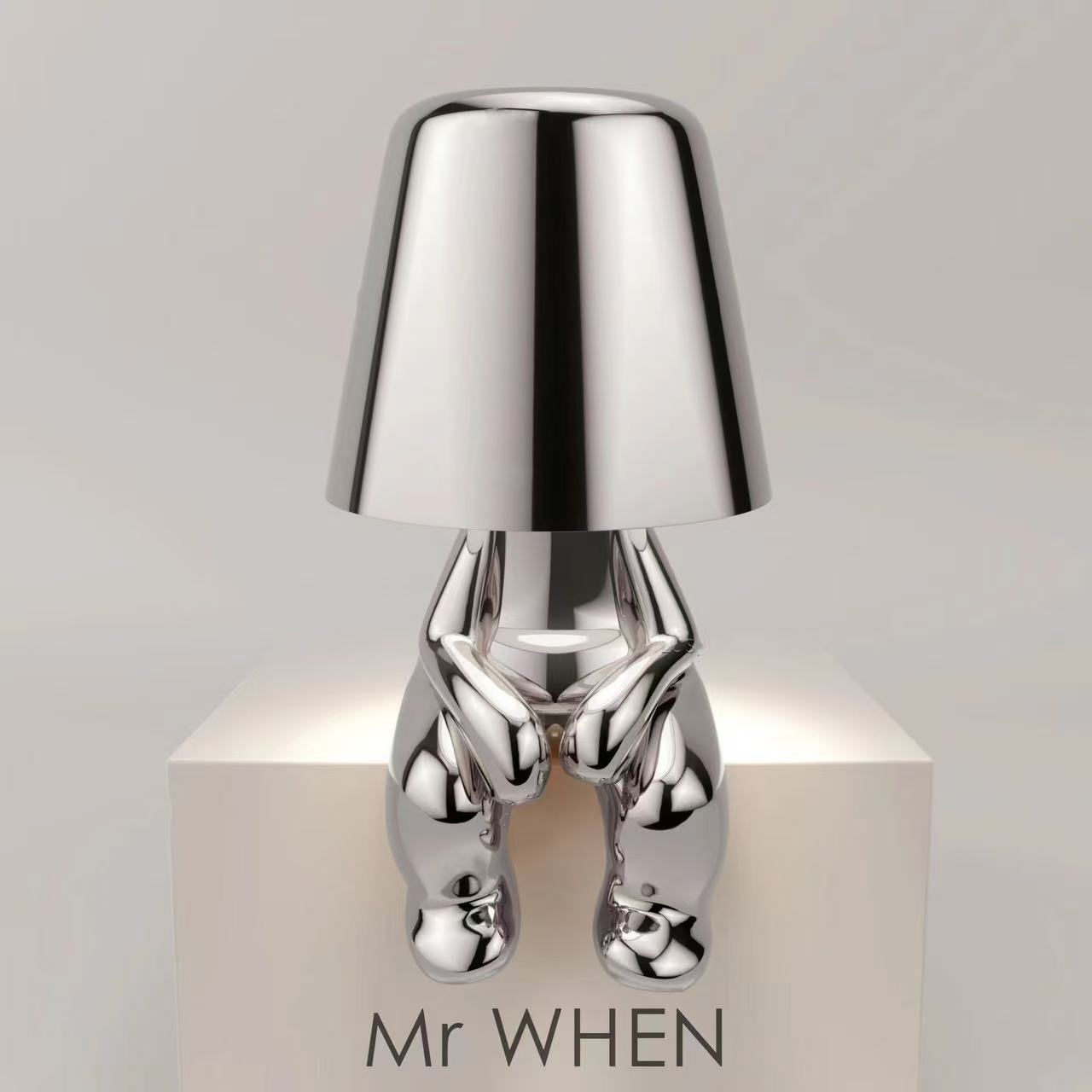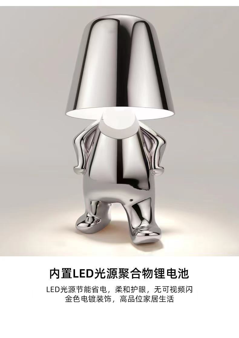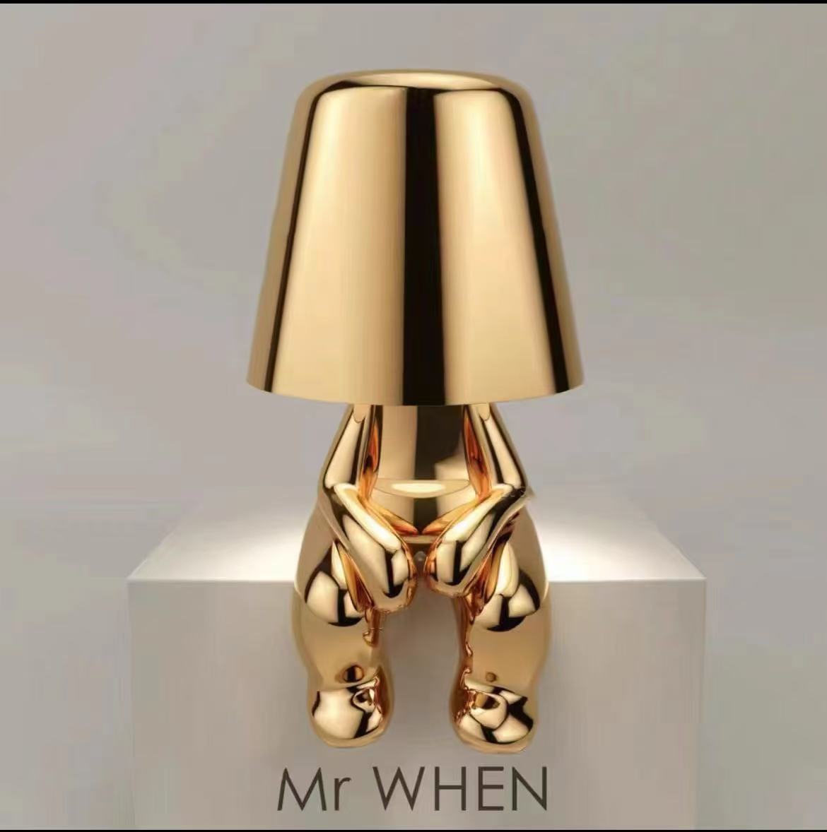 생각하는 사람 작은 골드 인형 테이블 램프 거실 침실 만화 크리 에이 티브 장식 머리맡 터치 분위기 USB 충전식 테이블 램프스토어 가기