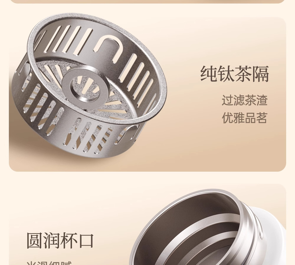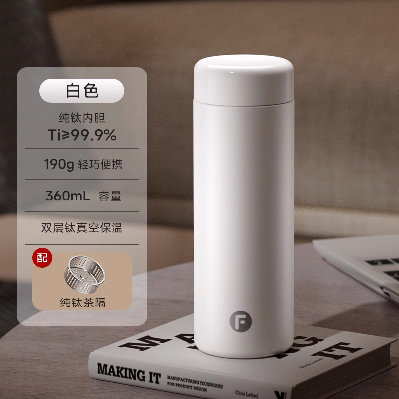 • 화이트 360ML [순수 티타늄 내부 및 외부 순수 티타늄 티 필터]
