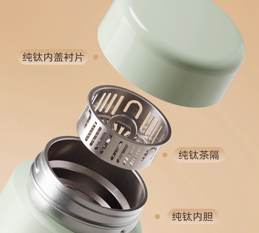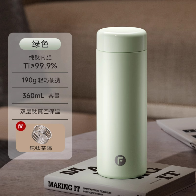 • 그린 360ML [순수 티타늄 내부 및 외부 순수 티타늄 티 필터]
