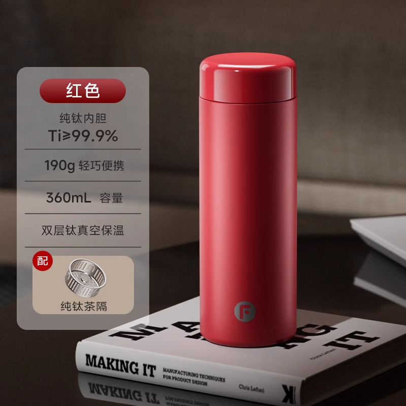• 레드 360ML [순수 티타늄 내부 및 외부 순수 티타늄 티 필터]