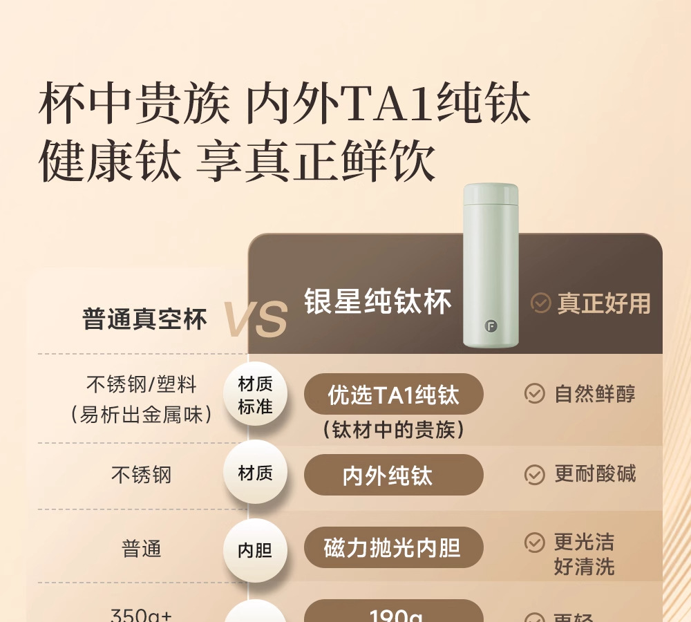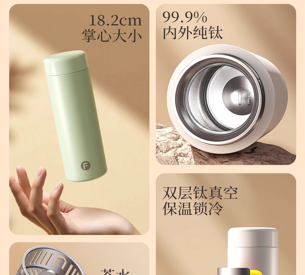 소녀들을 위한 Fuguang 순수 티타늄 미니 보온병 컵, 멋진 2025 새로운 스타일 선물, 소형 및 휴대용 티컵, 티타늄 컵스토어 가기
