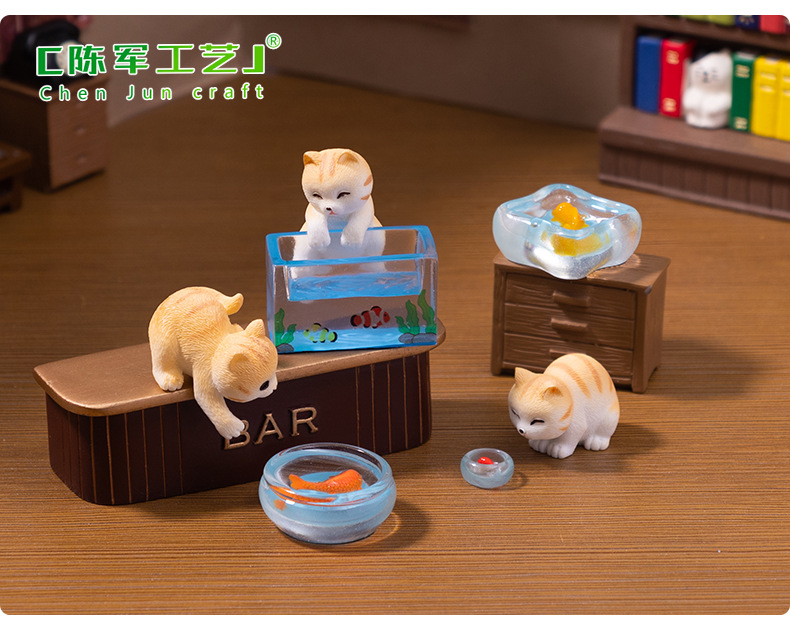 귀엽고 장난 꾸러기 물고기 잡는 작은 고양이 인형 귀여운 인형 집 diy 장식 액세서리 미니 데스크탑 장식품