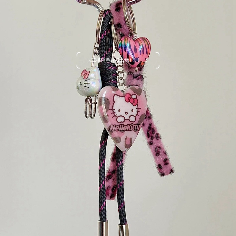 샤오홍슈 오리지널 핑크 레오파드 키티 펜던트 ~ 키체인 가방 만화 귀여운 미우 스타일 끈 펜던트스토어 가기