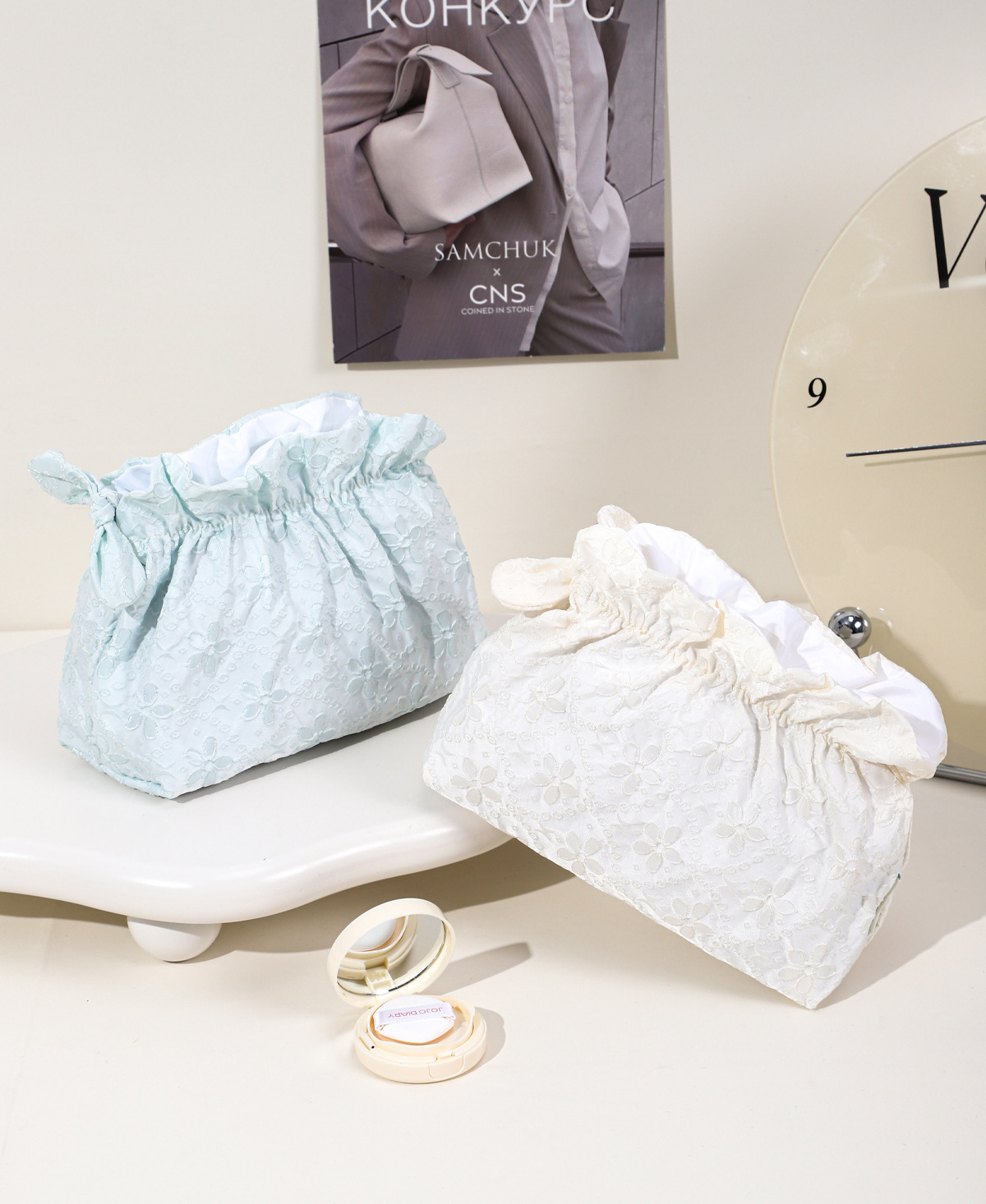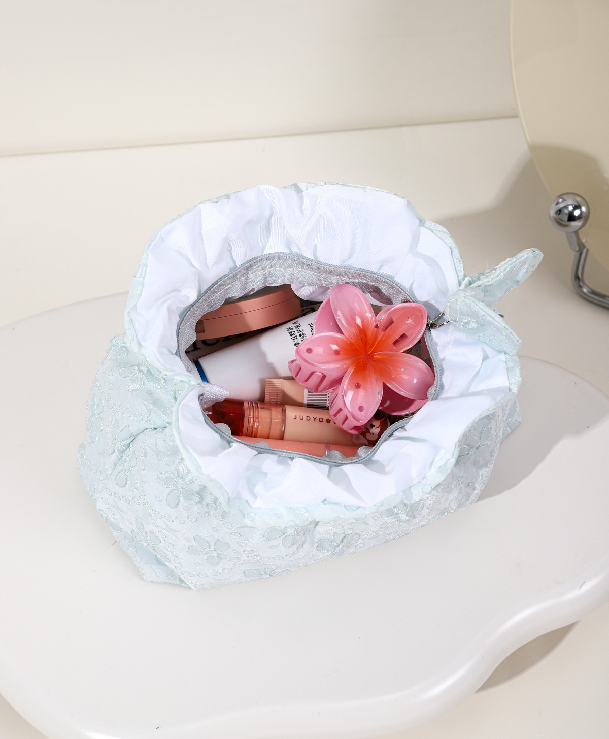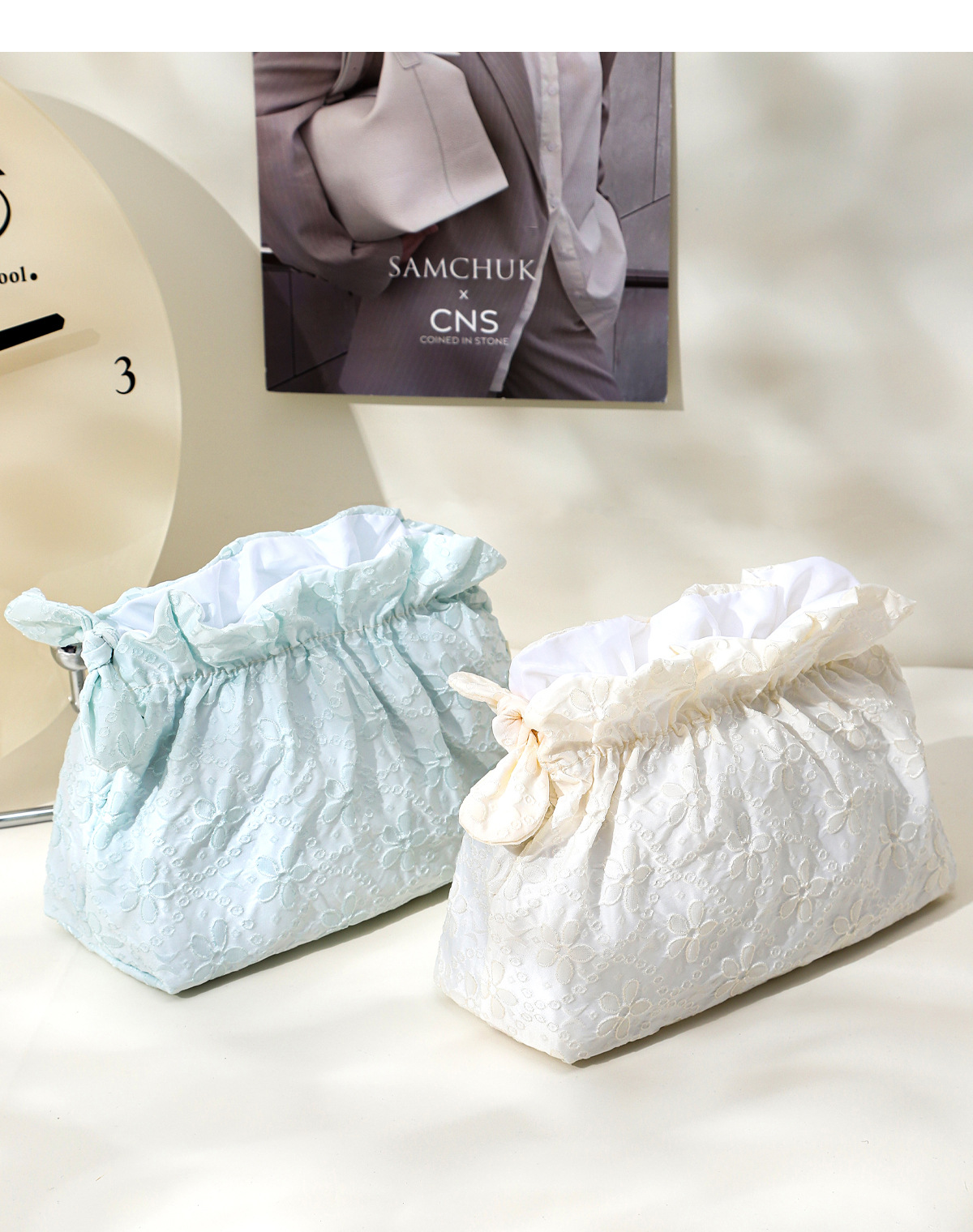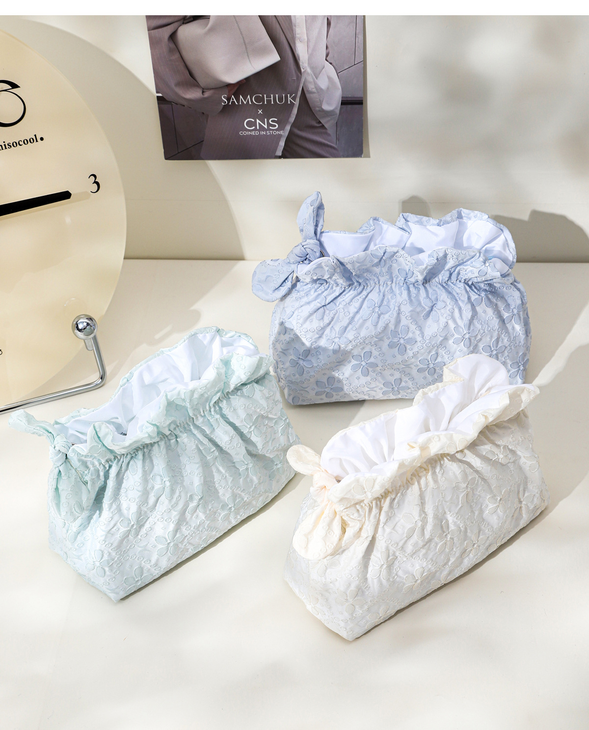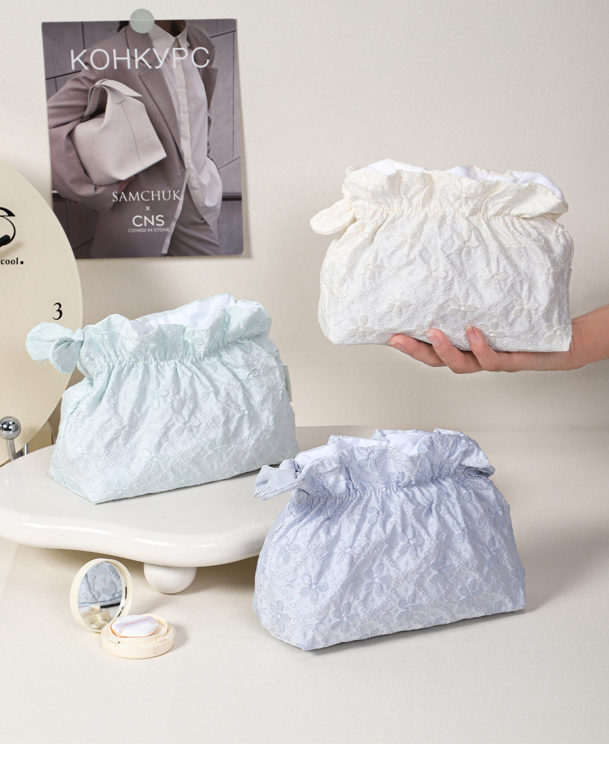 한국식 작은 신선한 자카드 화장품 가방 여행 휴대용 클라우드 보관 가방 소녀 화장품 대용량 세면 용품 가방