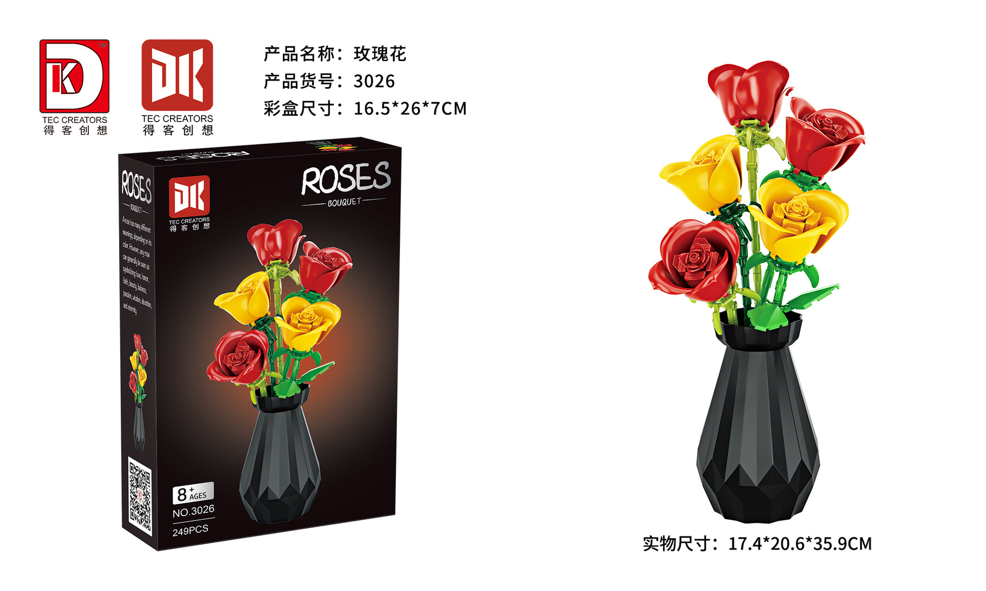 데케 창샹 3004-36 난초 장미 식물 조립 어린이 교육용 블록 장난감 발렌타인데이 선물