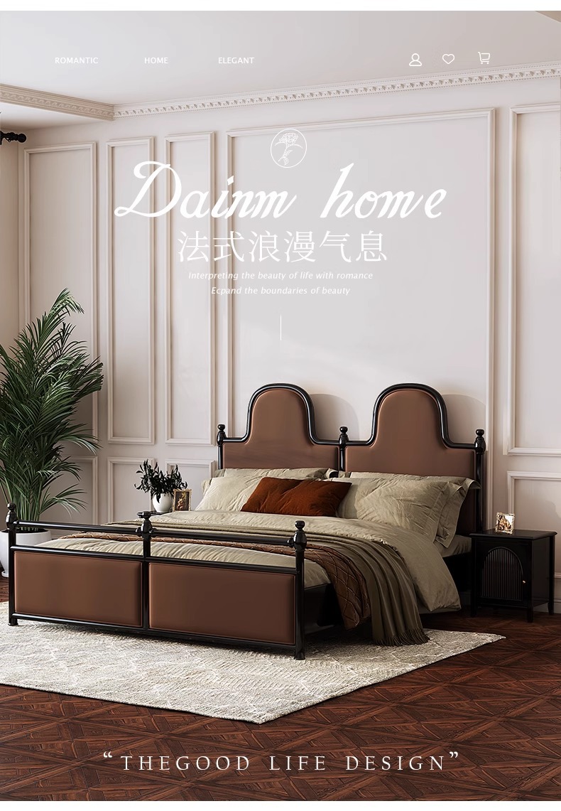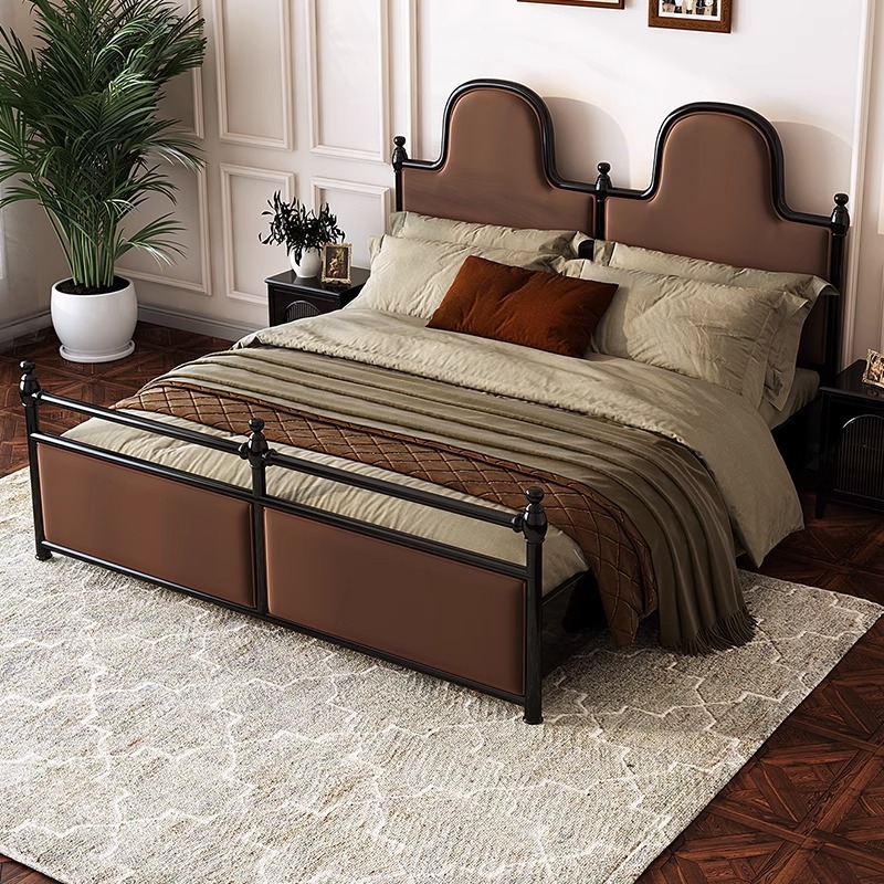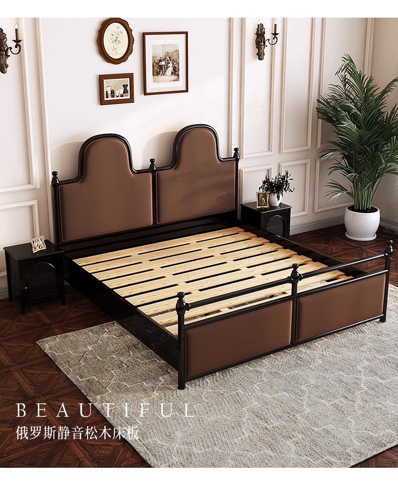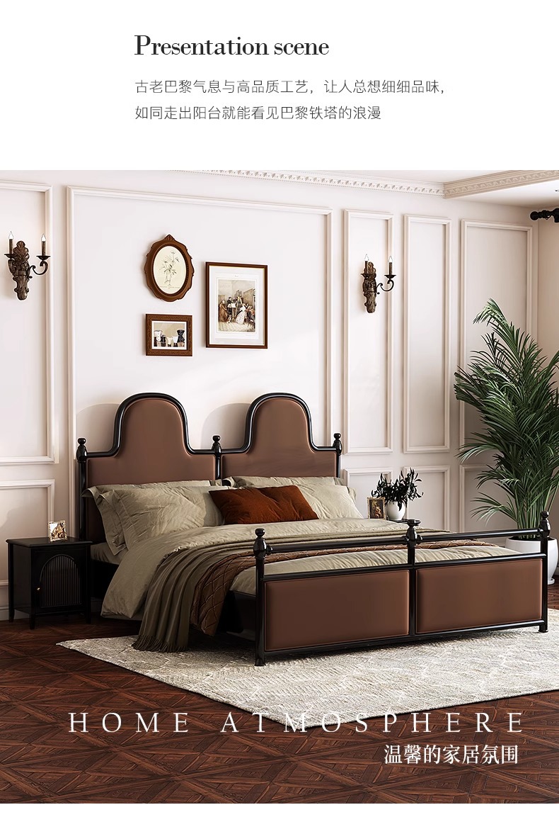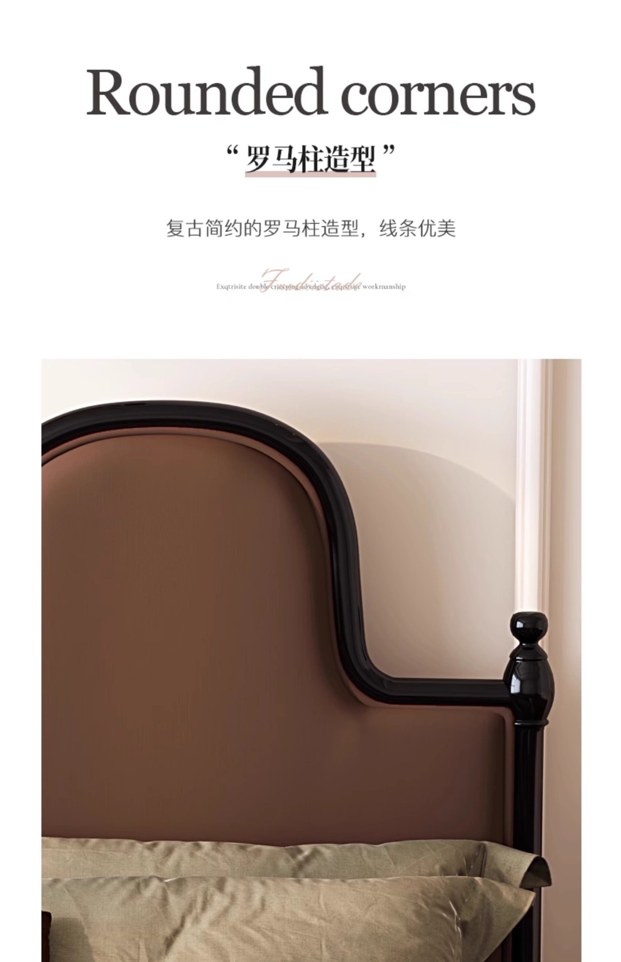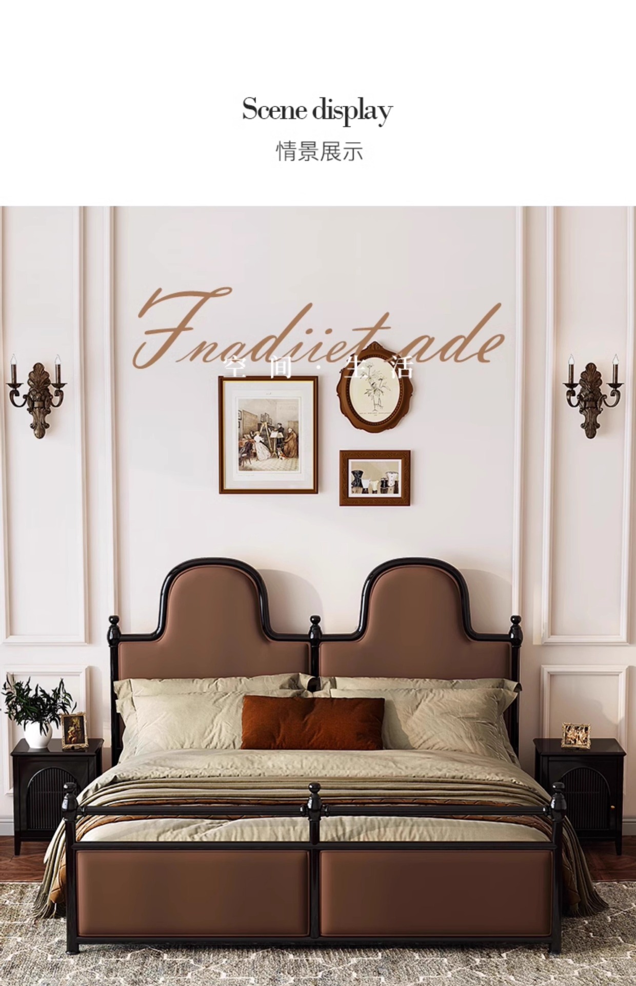 레트로 프렌치 침대 옆 소프트 백 1.5M1.8M 더블 침대 블랙 파리 침대 중세 스타일 미국식 단단한 나무 침대 홈스토어 가기