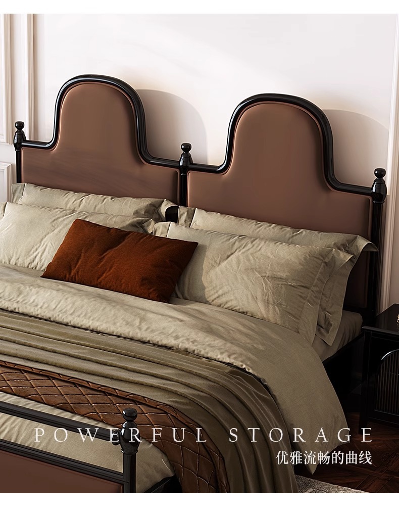 레트로 프렌치 침대 옆 소프트 백 1.5M1.8M 더블 침대 블랙 파리 침대 중세 스타일 미국식 단단한 나무 침대 홈