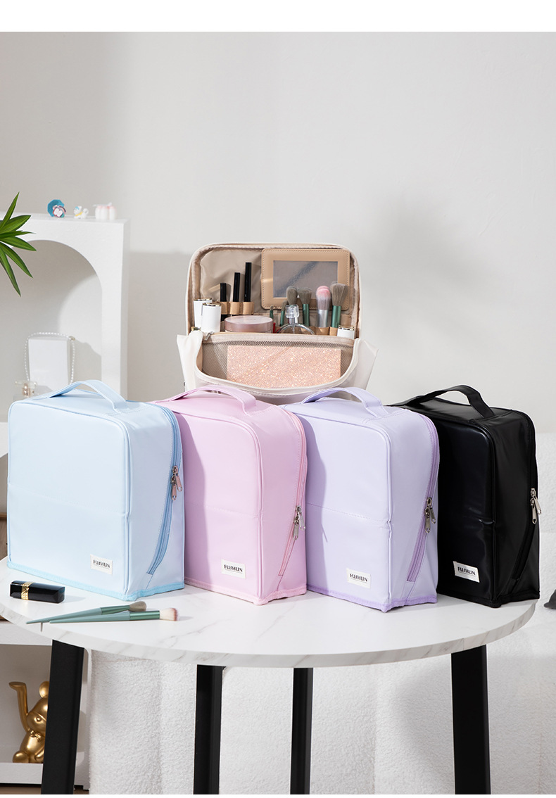 여성용 대용량 방수 스탠드형 화장품 가방, 여행용 가방에 걸 수 있는 내마모성 필통 수납 가방스토어 가기