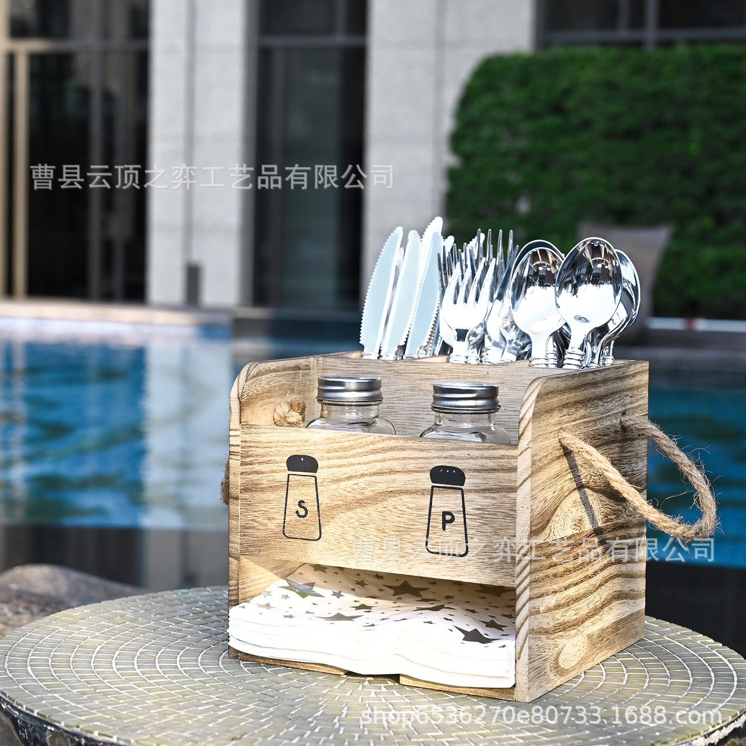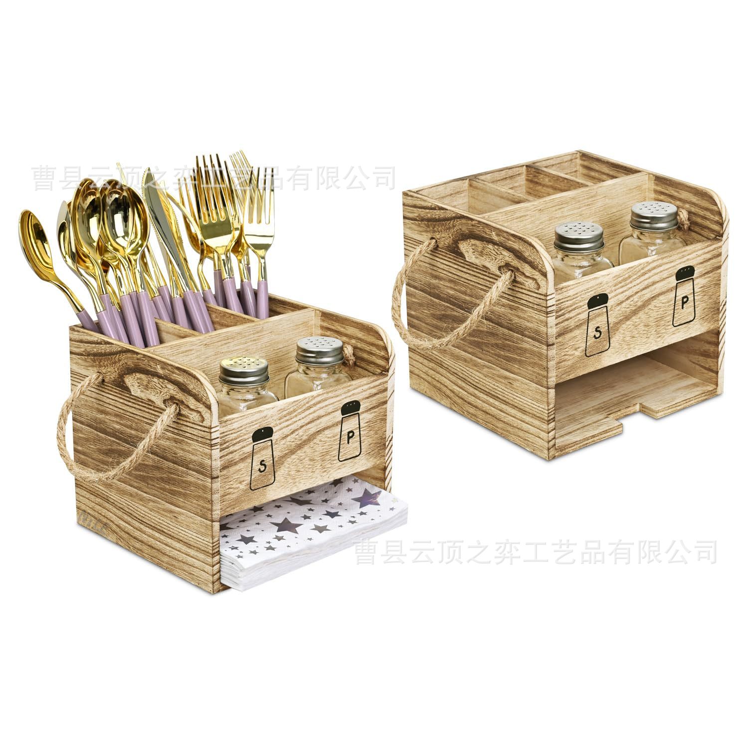 나무 식기 보관함, 수저, 은식기 상자, 조미료 항아리 보관함, 손잡이가 있는 티슈 상자, 식기 상자
