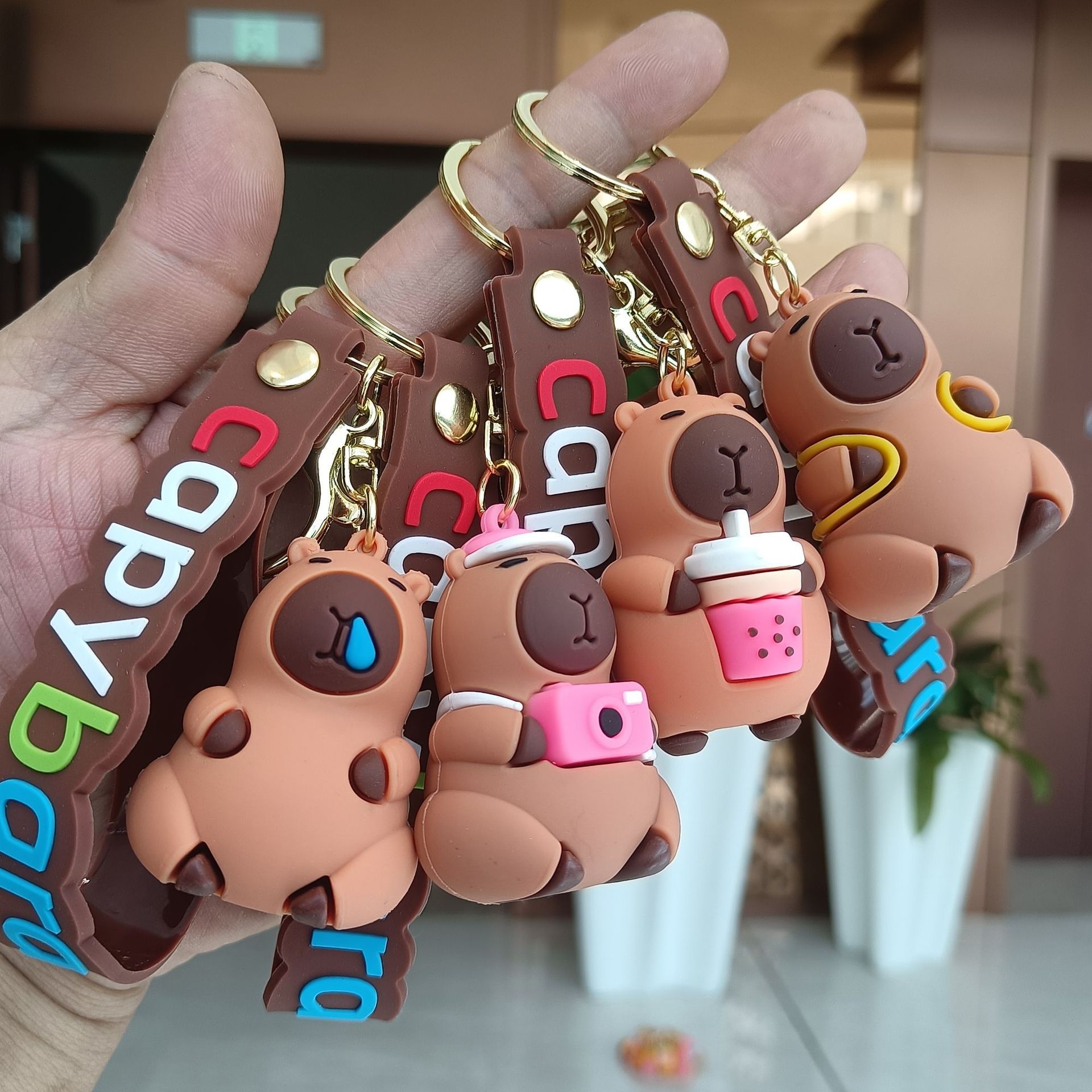 귀여운 Capibala 키 체인 만화 Capybara 인형 작은 펜던트 커플 열쇠 고리 학교 가방 펜던트 도매스토어 가기
