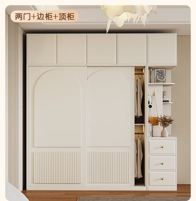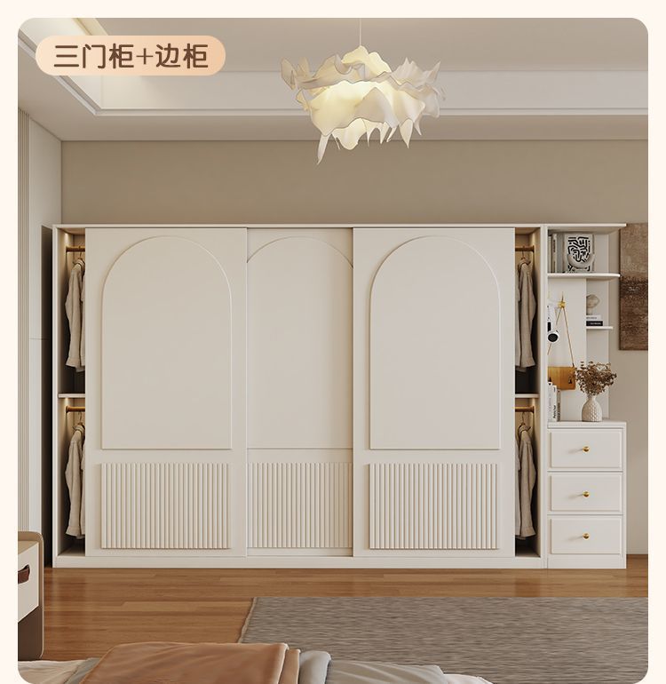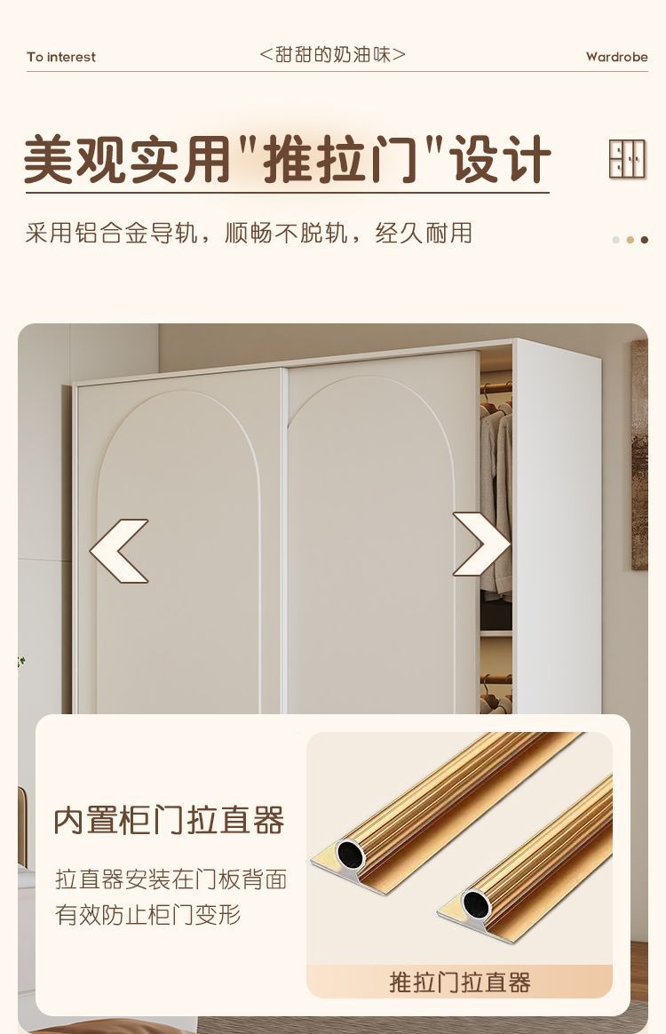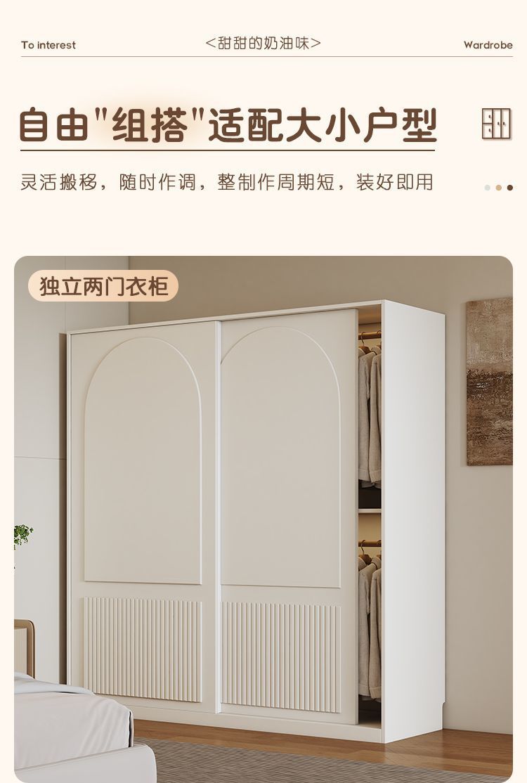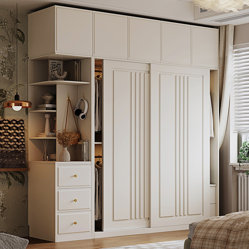 옷장 크림 스타일 프렌치 슬라이딩 도어 인터넷 연예인 홈 캐비닛 경제적 인 고급 소형 아파트 간단한 대형 옷장스토어 가기