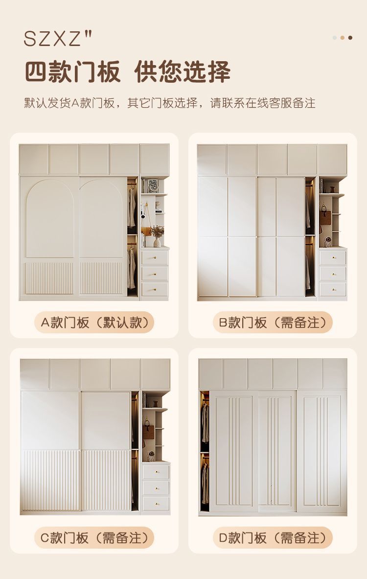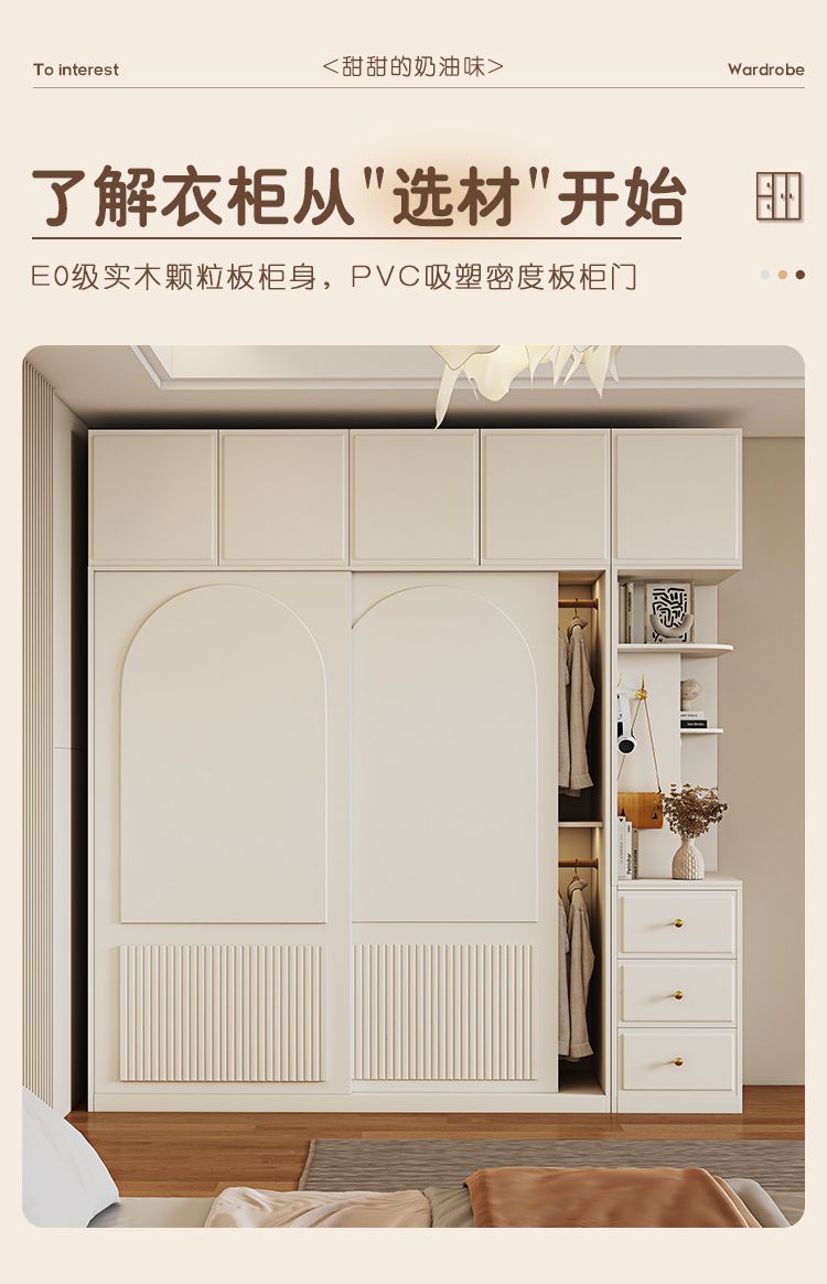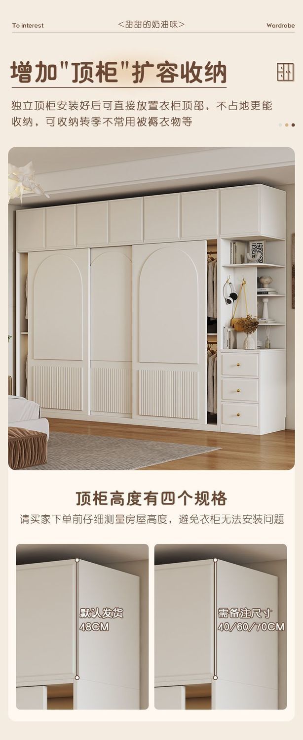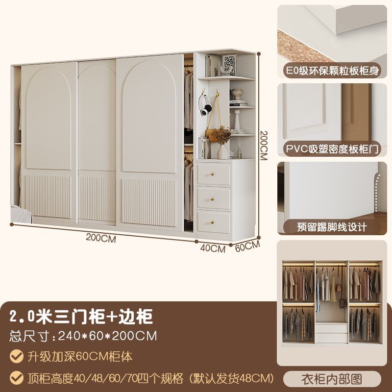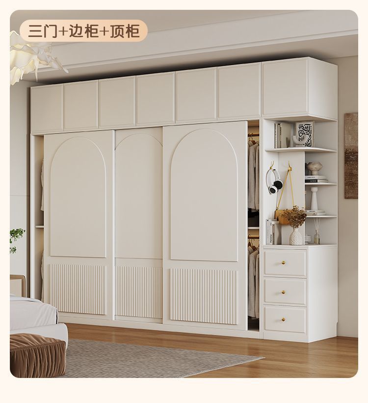 옷장 크림 스타일 프렌치 슬라이딩 도어 인터넷 연예인 홈 캐비닛 경제적 인 고급 소형 아파트 간단한 대형 옷장스토어 가기