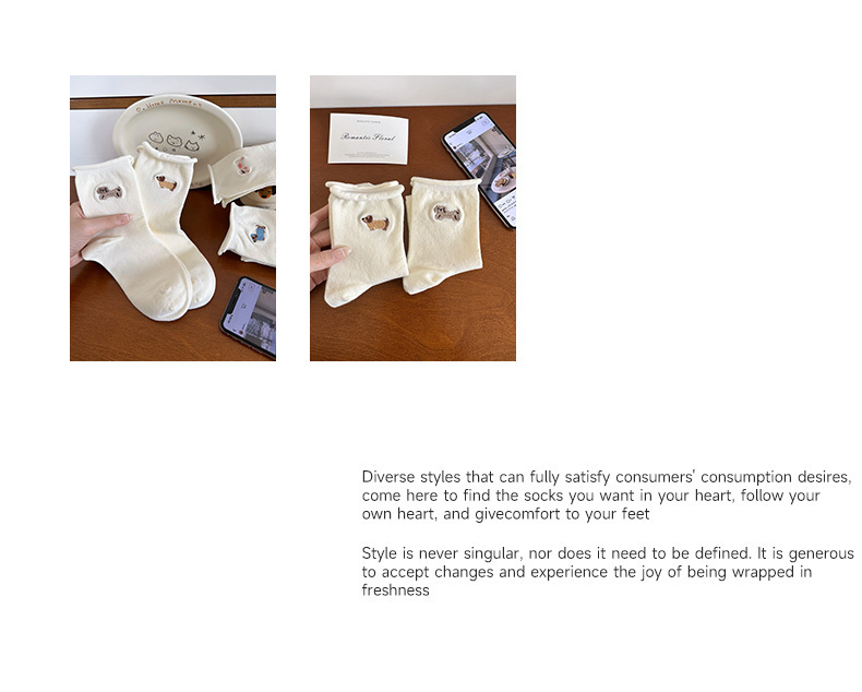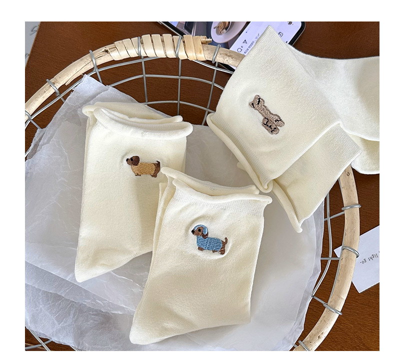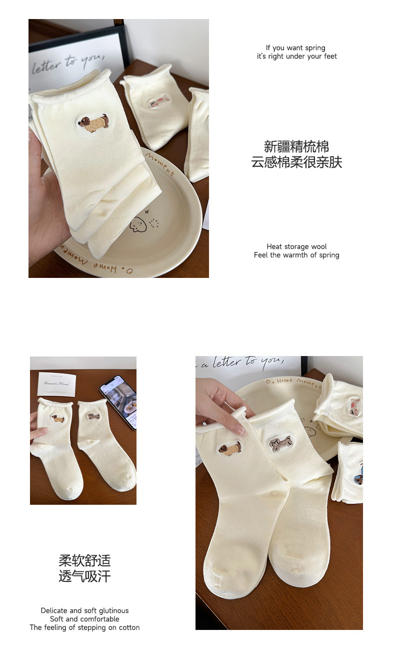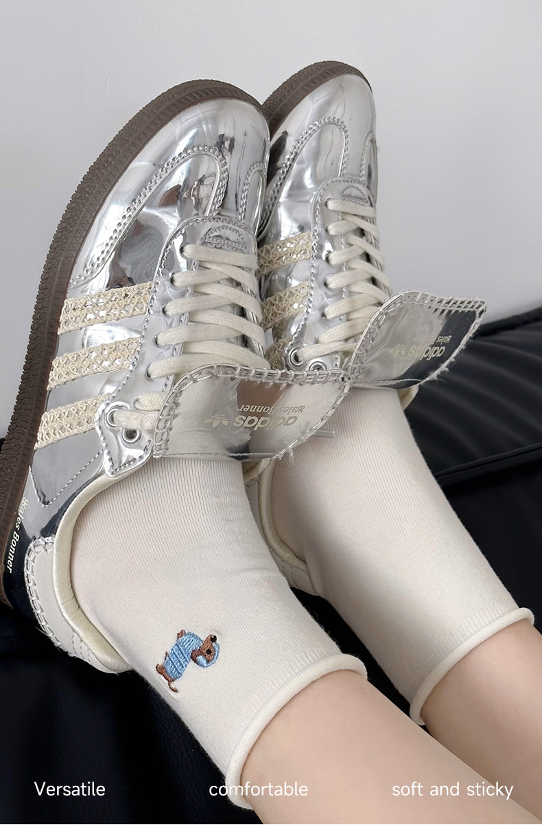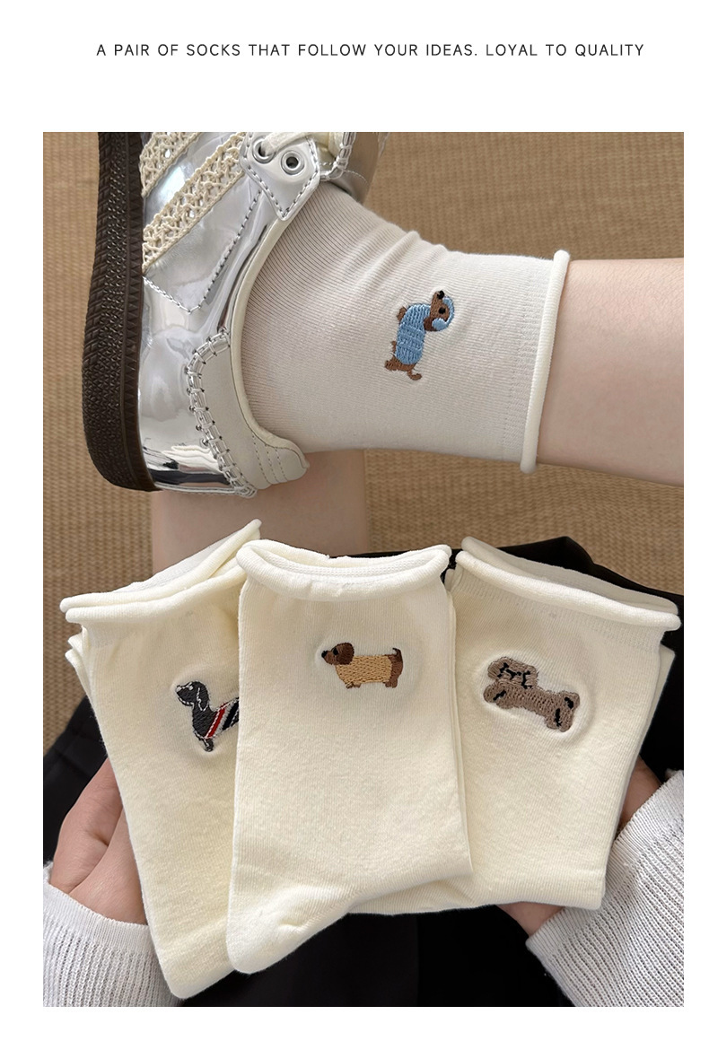 여성용 여름 양말, 자수 강아지 중목 양말, 일본식 얕은 입구 미끄럼 방지 통기성 다용도 얇은 귀여운 짧은 양말