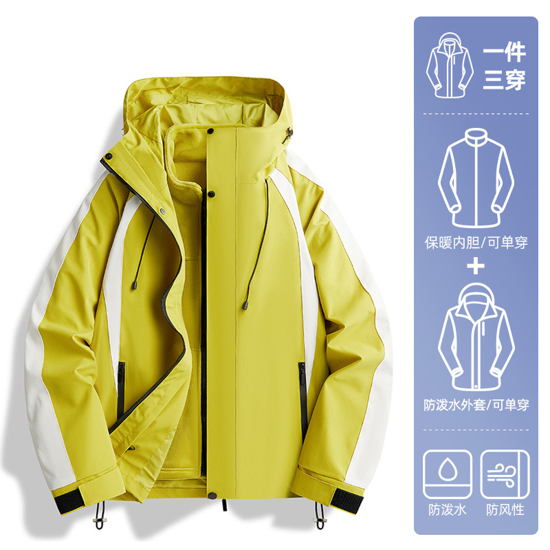 딱따구리 노란색 재킷 여성 재킷 가을 2025 새로운 3-in-one 방풍 야외 등산 컬러 매칭 재킷