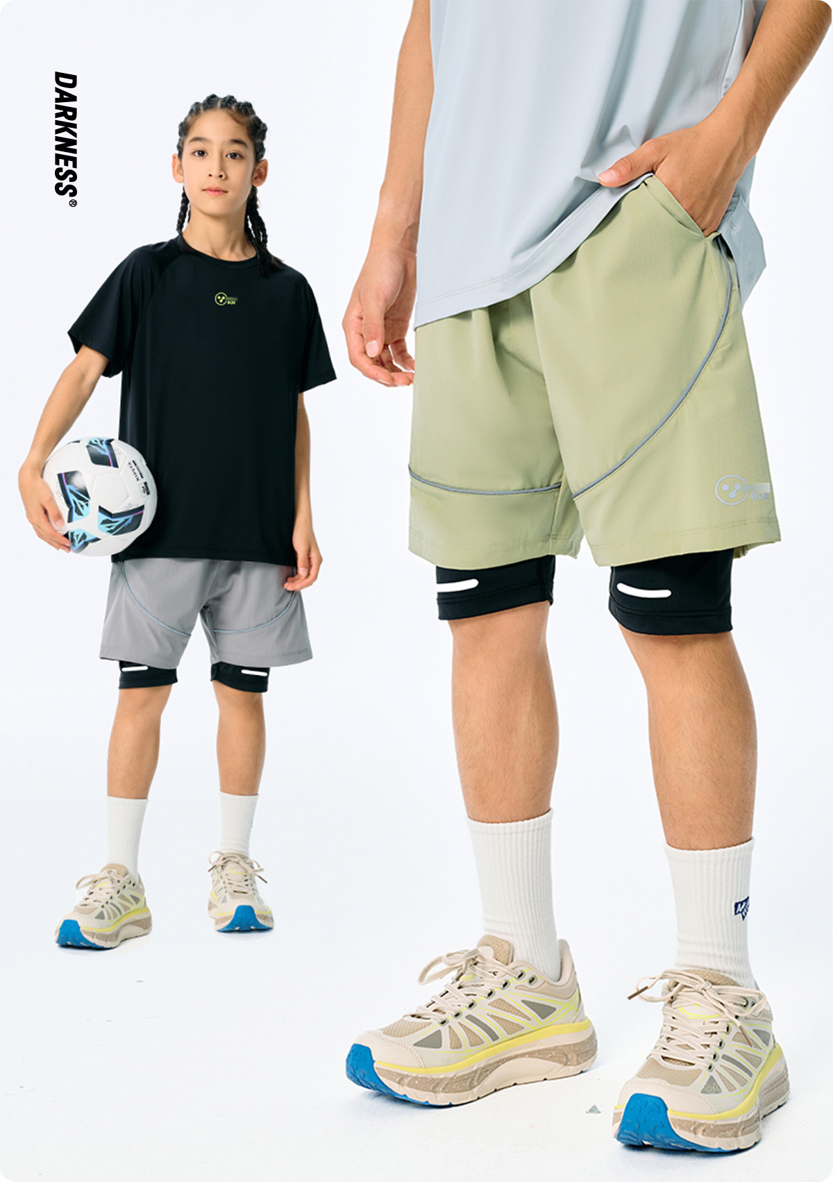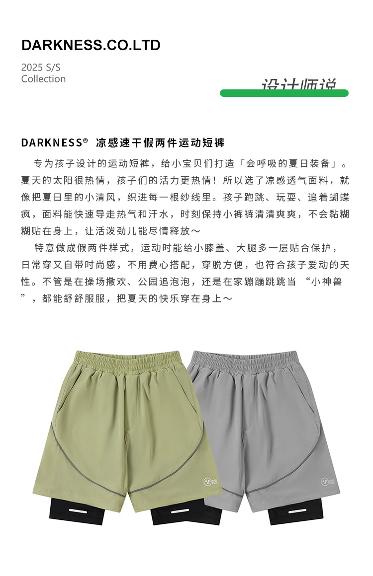 DK 아동복 25 여름 통기성 소녀 및 소년 시원하고 속건성 스포츠 페이크 투피스 반바지 어린이 중대형 어린이 러닝 팬츠스토어 가기