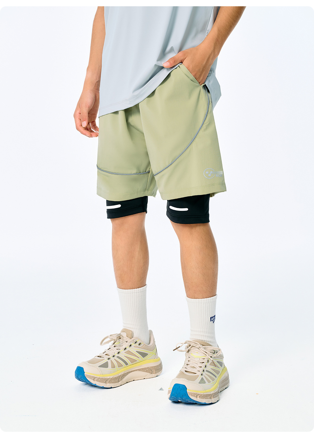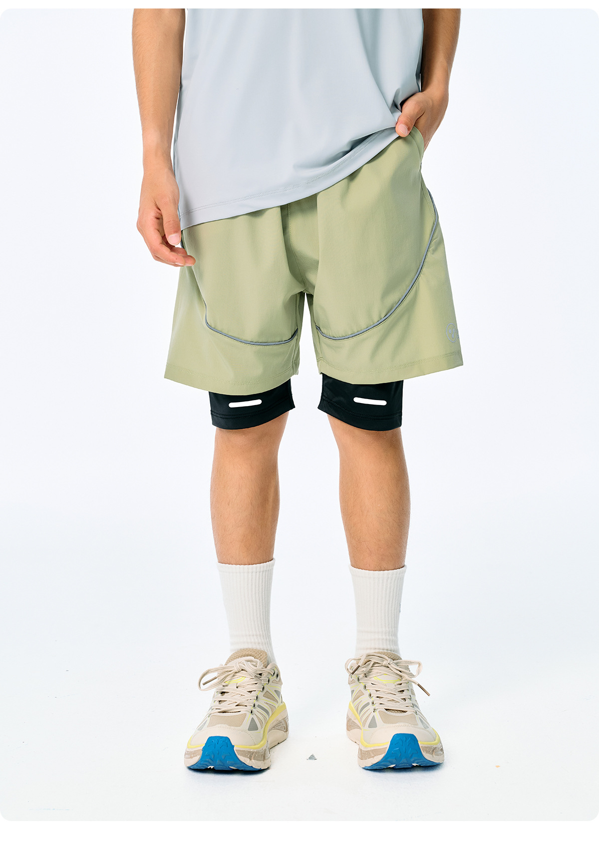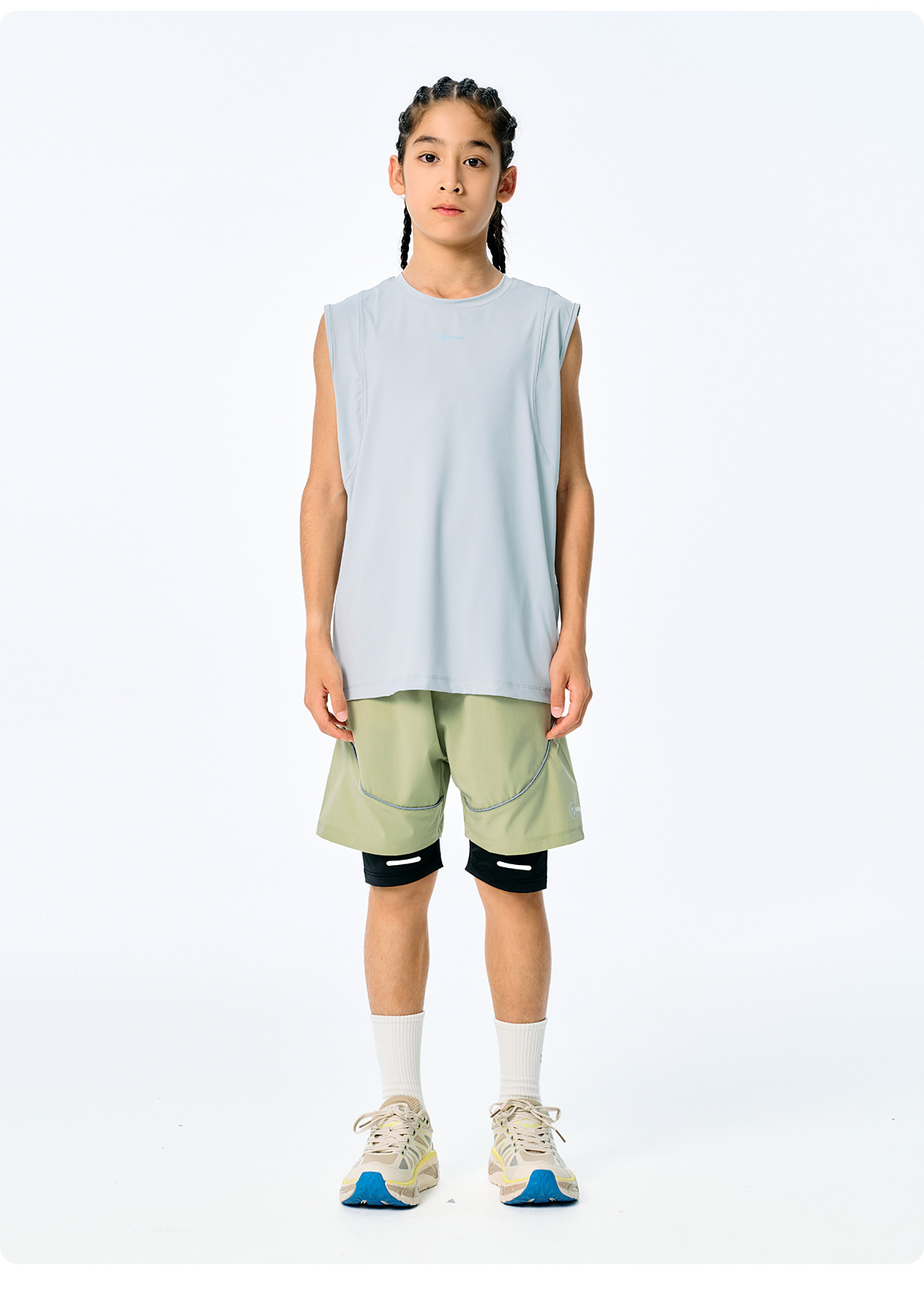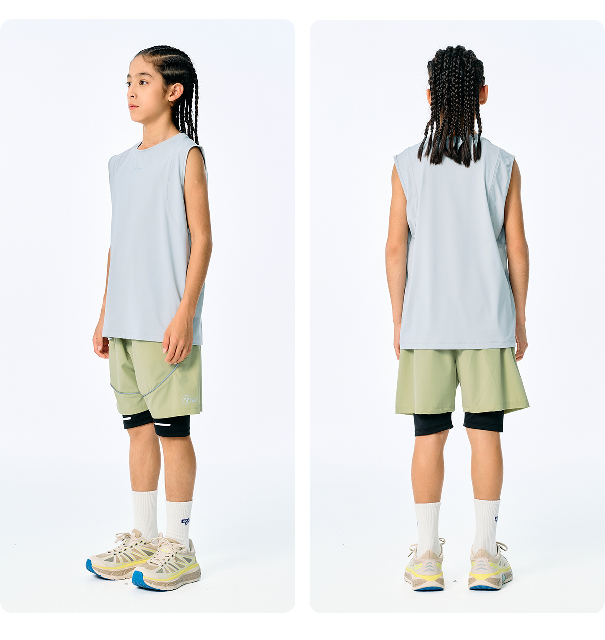 DK 아동복 25 여름 통기성 소녀 및 소년 시원하고 속건성 스포츠 페이크 투피스 반바지 어린이 중대형 어린이 러닝 팬츠